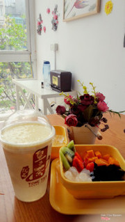 7.4Tạm đượcLục Trà gạo lức thơm mùi gạo lức, hơi ngọt. Hồng trà hoa hồng trân châu đen ngọt. Thiên đường nhiệt đới có xoài, kiwi, dâu, thạch đen kết hợp với sữa thơm béo. Nhân viên phục vụ chậm, order phải đợi lâu. Địa điểm quán ngay gần đại học Phương Đông khá dễ tìm. Không gian của quán rộng rãi, decor nhẹ nhàng khá dễ thương. Có bàn 2 ghế, 4 ghế, 8 ghế, phù hợp cho các bạn tụ tập, học nhóm, mình thấy ở đây cũng khá yên tĩnh và sáng sủa. Quán có chỗ để xe+ wifi. ...Xem thêm