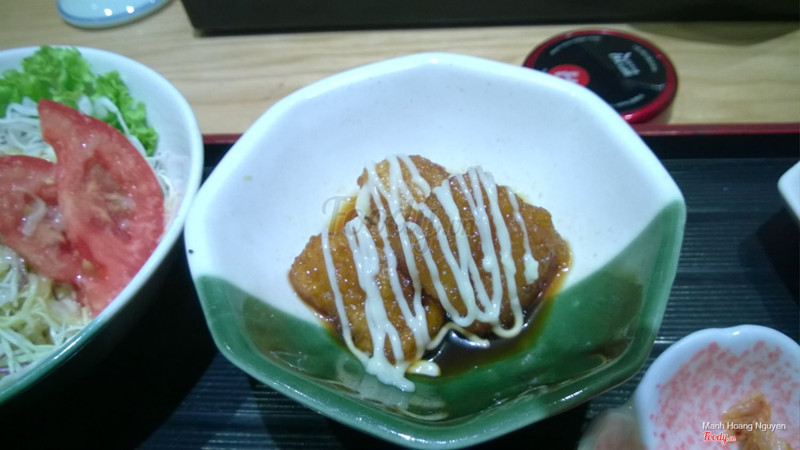 7.6Takumi- đồ ăn Nhật BảnPhố Bùi Thị Xuân có mấy quán ăn Nhật Bản liền nhưng toàn ở đầu phố, hnay mới phát hiện có 1 quán nằm ở cuối phố nè. Cửa của quán nhìn hơi bé nhưng vô bên trong mới biết không gian vô cùng rộng nha. Cách bài trí cũng đẹp và bắt mắt. Mình thích vụ có nhiều phòng nhỏ cho khách (kể cả phòng cho 2 người) tạo 1 không gian riêng để bọn mình có thể 8 chuyện thoải mái a. Set mình ăn trưa là gà teriyaki nhưng cũng tiện tay ăn ké của các bạn khác nữa, cảm nhận chung đầu tiên là set nào cũng nhiều. Amen, mình tự nhận là 1 đứa ăn khá là khỏe nhưng cũng ko xơi hết nổi 1 set, đặc biệt là bát cơm siêu to (thế mà thấy anh đầu bếp còn bảo mấy bác ng Nhật toàn xin thêm cơm, thiệt là nể). Ngoại trừ đồ ăn chính ra thì đồ ăn kèm sẽ thay đổi theo ngày, set của mình gồm có : trứng cấp, súp miso, cá chiên ngọt và salad khoai tây. Ngoại trừ món cá mình không khoái ra thì các thức ăn kèm khác đều ngon (Set bạn mình có salad bắp cải ăn cũng ngon lắm). Món chính bình thường (chắc tại mình ko khoái gà cho lém :P) Phục vụ ở đây nhẹ nhàng lịch sự, đồ ăn mang lên cũng nhanh, dắt xe cũng niềm nở, nói chung là tốt :3 P.s: mình chụp nhiều ảnh lắm mà sao app fooody bên IOS chỉ cho up có 3 cái, thiệt là đau lòng >.< ...Xem thêm