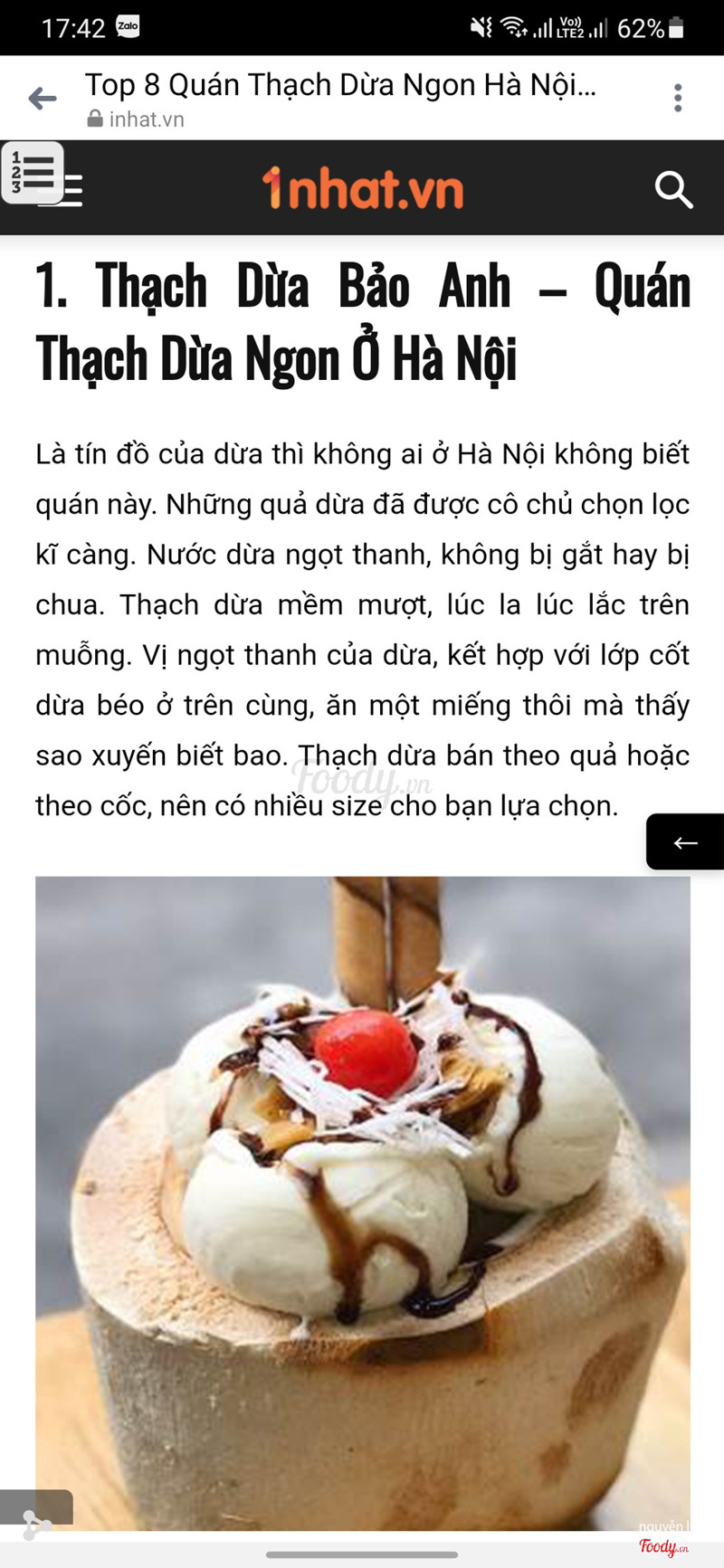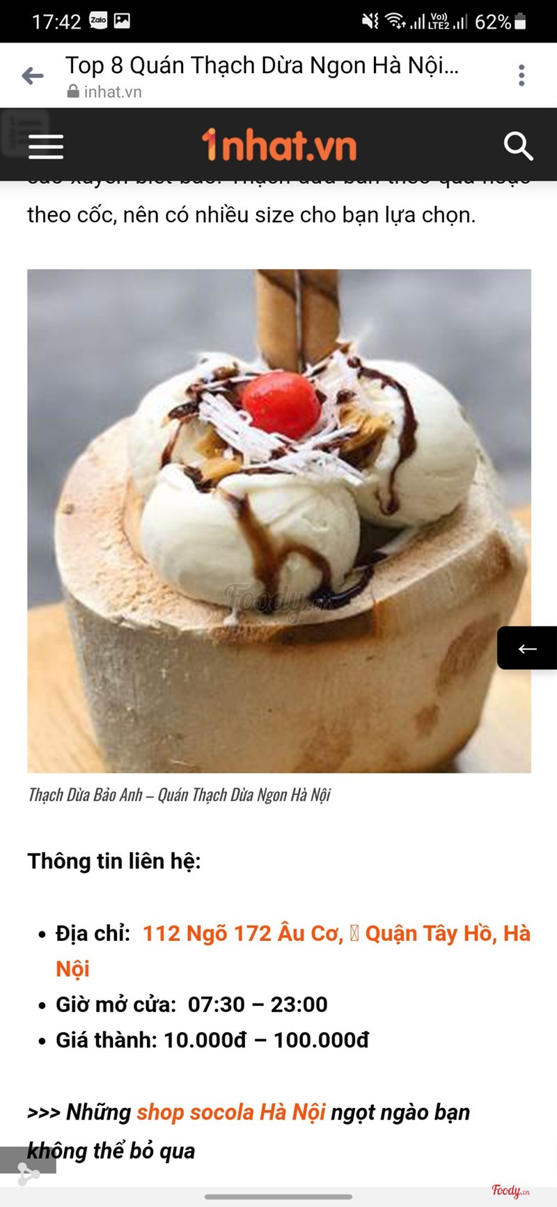 9.0Ngon, rẻ, chất lượngĐược hôm nay trời nắng, HN lại nới lỏng các dv ăn uống nên mình ghé qua quán ăn thử Vị trí: quán nằm ở số 20 chỗ phố Tứ Liên,*** Tây Hồ, HN. Nghe đâu đó hình như quán có thêm địa điểm nữa ở ngõ 172***hay sao í :v View: quán có vỉa hè rộng rãi, có chỗ để xe (ko sợ mất phí hehee :))) Đồ ăn, đồ uống: - Thạch dừa: dai, mềm mượt, k bị ngọt quá, ncl là ưng - Caramel: ngon, rẻ hơn ở Anh Hòa, cũng gọi là mê chữ ê kéo dài. Nma mê nhất là caramel phủ cốt dừa ya - Chè bưởi: cũng khá là ngon, quán có nước cốt dừa rất đặc trưng, vừa miệng - Sinh tố: mình gọi ổi mix cóc. uống đã dã man Nhìn chung là sạch sẽ. Thấy trên toplist bảo hàng của quán homemade 100% khá là chất lựng nên mình cũng yên tâm Ngoài ra thì menu khá đa dạng, có thêm sto nước ép các loại cũng rẻ phết, nhưng quán chủ yếu là về dừa Quán khá đông khách nên mình chờ hơi hơi lâu tí. Khi nào có dịp lên mạn Hồ Tây thì mình sẽ ghé lại lần nữa kaka:)))) Ảnh chỉ mang tính chất nhận điểm :) ...Xem thêm
