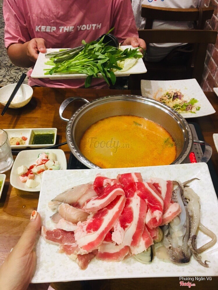 9.0Đồ ăn ngon - độc đáo - phục vụ chu đáo - giá phải chăng.Ăn ở đây không ít lần thì sau hôm qua noel 24/12/2020 bây giờ mới viết được feedback về nhà hàng này cho những bạn chưa thử quán này. - Nhân viên cười từ đầu đến cuối rất dễ chịu, các bạn cũng rất nhiệt tình, nhanh nhẹn, các bạn phục vụ nướng thịt tại bàn nướng rất kĩ thuật, một số bạn mới có thể k nắm bắt được nhưng riêng về thái độ rất là oke - Hqua mình dùng menu 269k cả lẩu và nướng, vì là ngày lễ nên không áp dụng ctkm gì chứ bt nhiều ưu đãi lắm. - Đồ ăn Đầu tiên salad, khai vị rất nhiều món, thích nhất món cánh gà và nẻm bỏ, salad hoa quả, và món gỏi heo hay gà gì đó ăn với lá bắp cả rất hay. Tiếp đến là món nướng, bò, heo gà, hải sản được ướp sốt đậm đà, rất nhiều loại sốt đảm bảo các bạn chưa thử ở đâu luôn, nghe bảo là toàn sốt Thái, nước chấm có hai loại 1 loại chấm thịt một loại chấm hải sản, riêng mình thì chấm hết vì cái nào cũng ngon. Đến tiết mục lẩu thì nước lẩu Thái không cay và cay thì mình dùng nước cay, đậm đà, thơm ngậy nước cốt dừa, riềng xả... đồ nhúng lẩu cũng rất phong phú tươi ngon. Nhưng mình toàn gọi rau ra nhúng với 1 ít bò mỹ. Cuối cùng tráng miệng rất lòng vòng vì thật sự là tuyệt vời, mặc dù rất no vẫn ăn tiếp đc 2 bát chè xoài và 1 bát caramen trà xanh. Không ngấy mà ngọt nhẹ. Có cả hoa quả nữa. Tóm lại. Về ý kiến cái nhân mình thấy quán này good. Bạn nào chưa thử nên ghé qua. ...Xem thêm