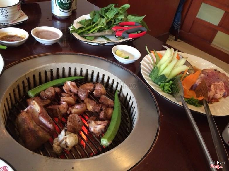 8.8Nướng lẩu ngon, nhà hàng sang, sạch sẽThịt ướp ngon, hải sản & nc chấm cũng ngon. Buổi trưa hay qua ăn chả cá với bún, 100k/ng. Nhân viên rất lễ phép & chịu khó đứng nướng hộ mình. Nhà hàng sáng sủa sạch sẽ, có phong Vip vủng, nhận đặt tiệc trẻ con các kiểu. Hôm qua đi ăn thấy 1 rừng chuối trên tường vàng chóe luôn. ...Xem thêm