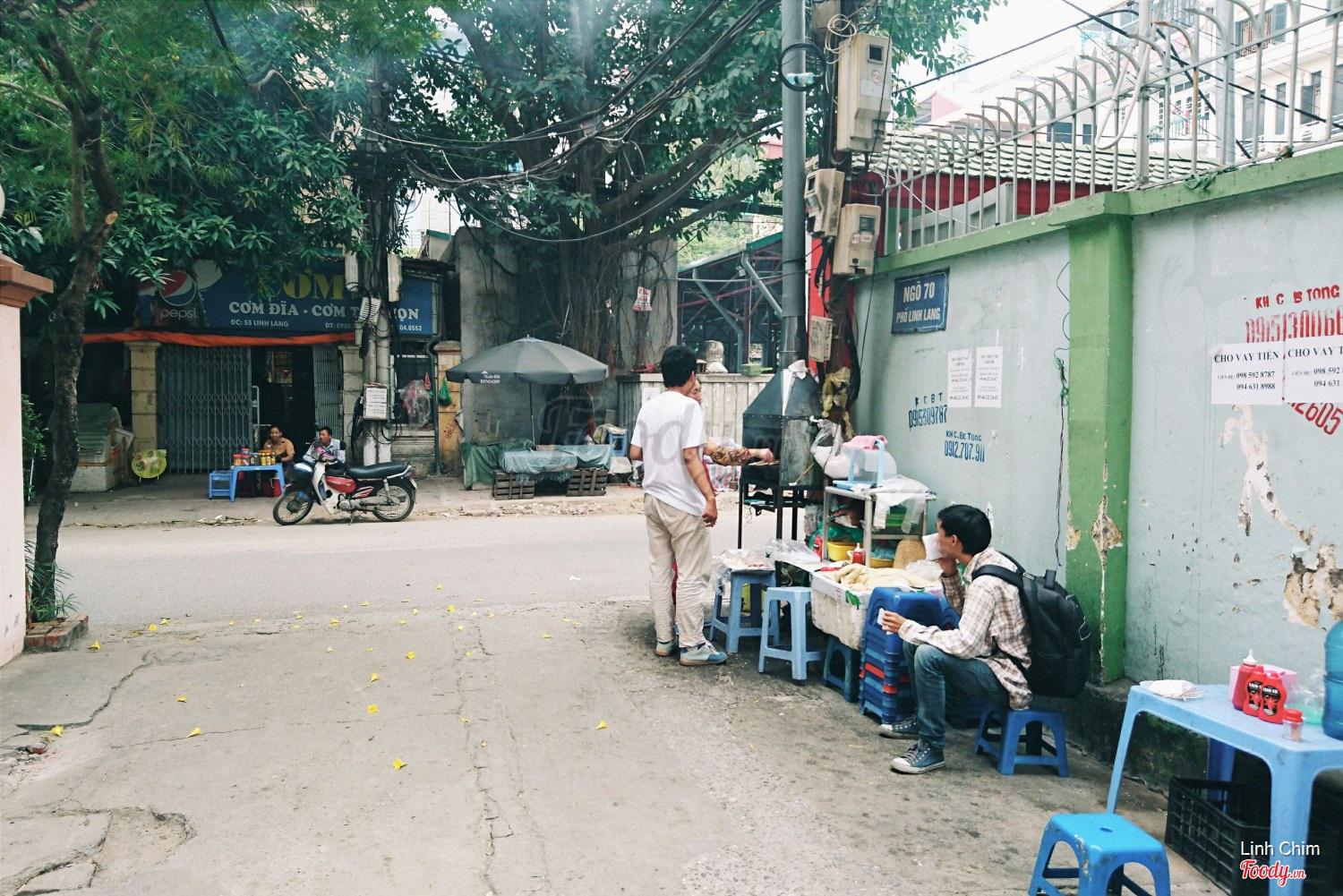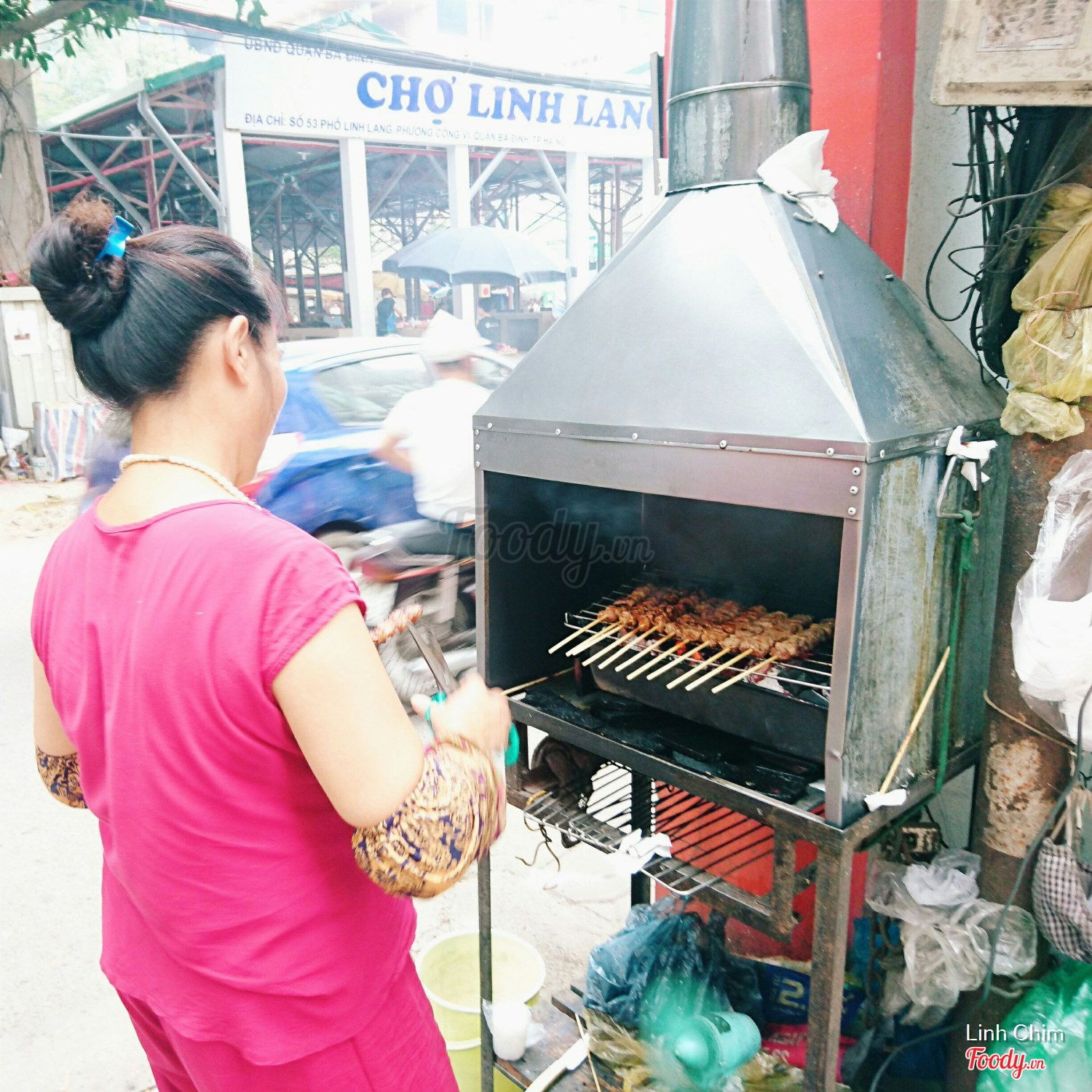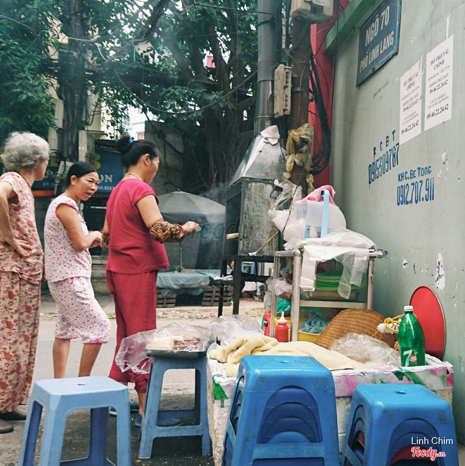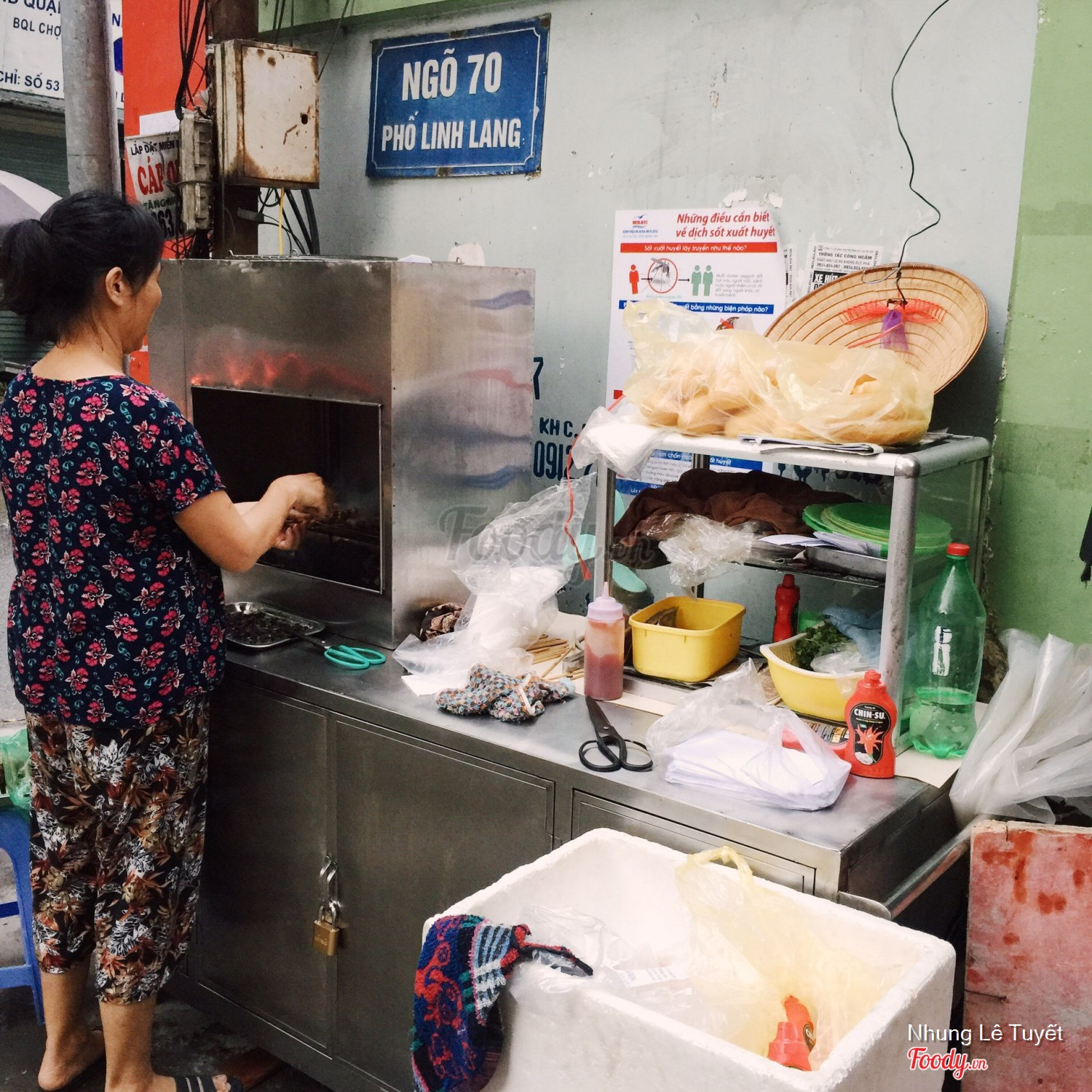 Quán ngay đầu ngõ 70 Linh Lang, ngày trước có ống khói cao ngút dễ tìm hơn, giờ thì cô chủ đã thay bếp nướng hút khói trông khá hiện đại