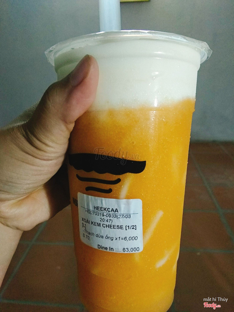 8.2Heekcaa Long BiênĐi đu đưa lạc tận qua khu Long Biên xong được mua cho cốc trà sữa mang về uống )) Được mua nên phải làm liền 2 cốc uống cho đã. Minh mua 1 Socola cake cream 59k và 1 trà xoài machiato 69k. Về chất lượng của 2 loại đồ uống này. Socola cake cream vị béo ngậy, hơi ngọt nên mình không thích lắm, xoài machiato ngon hơn, đậm vị xoài tươi, kem cheese mặn mặn khá giống với ở Royal Tea. Không gian quán có ánh sáng rất tốt, thích hợp để sống ảo ))) Nhân viên thì pha trà sữa rất là điêu luyện luôn, mình đứng xem thấy lắc lắc trà sữa rất chuyên nghiệp :v ...Xem thêm