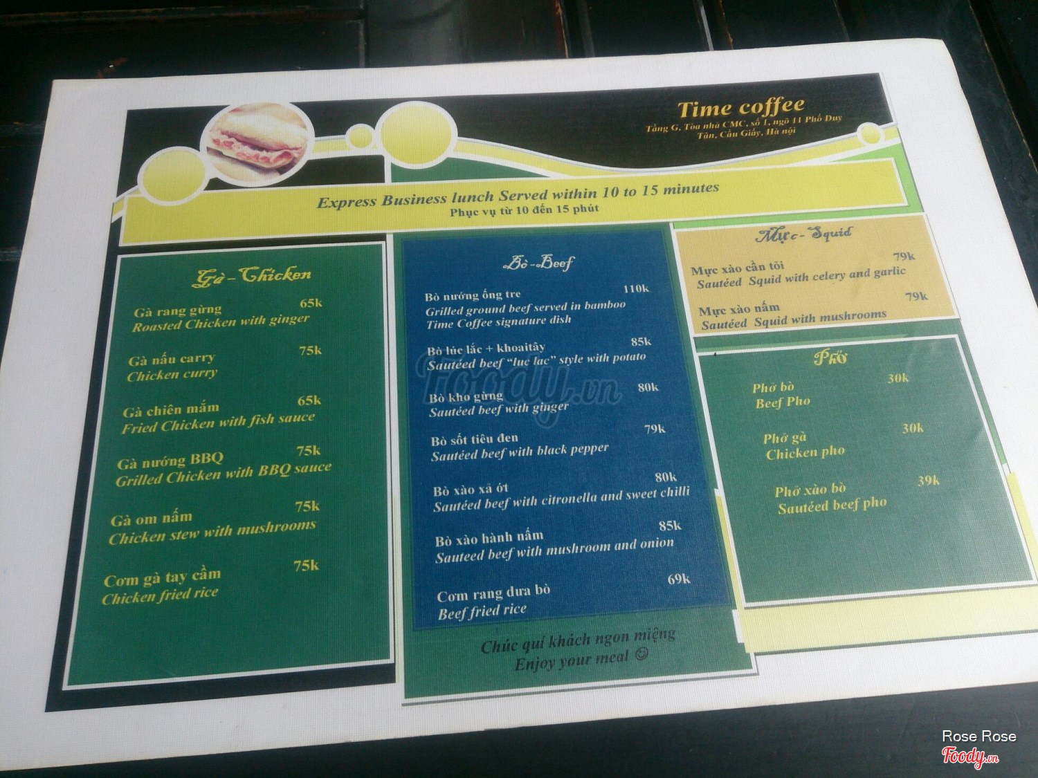 Ghi chú đặt bàn