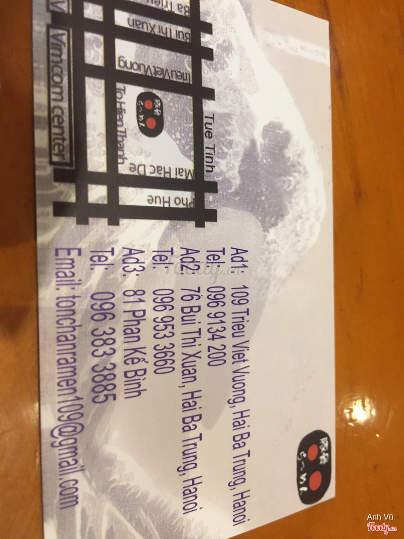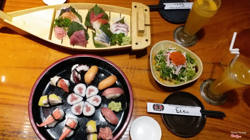 Tonchan Quán ăn Nhật nhỏ xinh trên phố Triệu Việt Vương . Không gian đậm chất Nhật Bản , khi vào cảm giác rất thoải mái . Mình có gọi món salad rong biển thanh cua trứng cua , cá trích ép trứng , nigiri lươn , mì ramen (thịt xá xíu ngon mềm) và cơm cá hồi . Đồ ăn nói chung khá , ưng mắt phết , hương vị cũng ổn , tươi , khá đầy đặn . Nhân viên khá tốt . Giá thành ổn , tầm 150k / ng no Menu cũng đa dạng nhiều món . Nhà hàng này có thể được xếp vào list các quán Nhật ngon mà giá không quá cao tại HN . ...Xem thêm