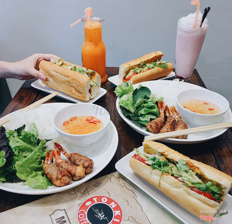 7.0Tonkin Coffee - Ấu TriệuGiờ mới biết quán cafe này có cả đồ ăn. Quán 2 tầng, tầng 2 nhìn thẳng nhà Thờ xịn xò phết. Nay bọn mình có thử bánh mì Sapa, vỏ bánh là baguette chứ ko phải kiểu bánh mì truyền thống, ăn giòn rụm mà vẫn mềm ruột. Nhân bánh là gà xé, có thêm nước sốt đặc biệt làm từ những nguyên liệu của Sapa Bọn mình có gọi thêm cả bún chả tôm,ngon nghẻ phết. Chả tôm chắc thịt, ngoài tôm hình như còn có các thành phần khác như giò, lạp xưởng, lạc... trong miếng chả nữa. Thật sự thì ăn suất này không no đâu ...Xem thêm