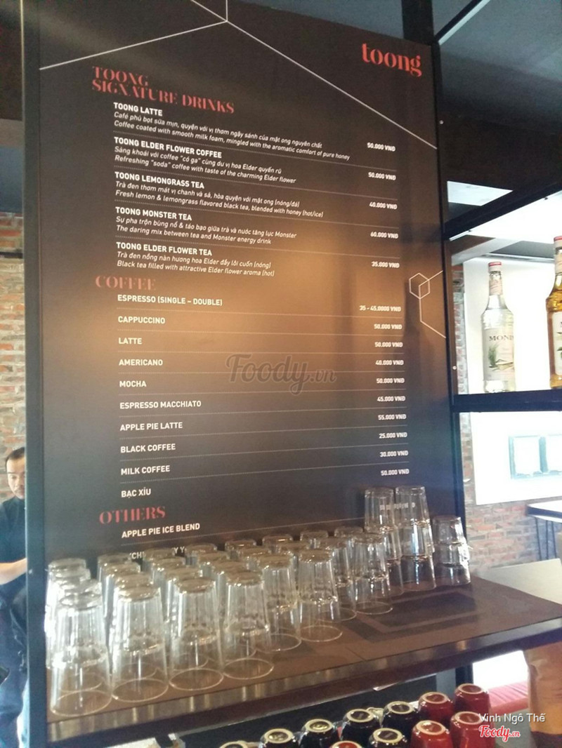 8.2Không gian ở đây quá tuyệt vời!Tôi rất thích ô cửa xanh, trường kỷ gỗ kết hợp với nội thất gỗ và gối đệm màu đỏ đun làm cho Toong vừa có cảm giác hiện đại, vừa có chút hoài cổ trong 1 không gian mở, vô cùng thư giãn! Nhâm nhi tách cafe, ôm laptop tìm cho mình 1 góc để tập trung ngâm cứu, tôi cảm giác đây thực sự ko phải là kko gian làm việc. Giống như lạc vào 1 resort nào đó ngay trong lòng phố sôi động. Đồ uống khá ngon, bánh ngon và trang trí đẹp. Ở đây từ nhân viên phục vụ đến những người quản lý vừa lịch sự vừa hiện đại và cảm nhận rất chất. Lần tới đến t sẽ mang theo 1 cuốn sách dày, ôm gối mà đọc chắc quên hết ngày tháng. Điểm chê duy nhất là lỗi lên cầu thang chung chưa dc đẹp. Có lẽ Toong cùng các nhà hàng ở đây nên chung tay vệ sinh cho sạch đẹp hơn. #bestWorkingSpaceEver ...Xem thêm