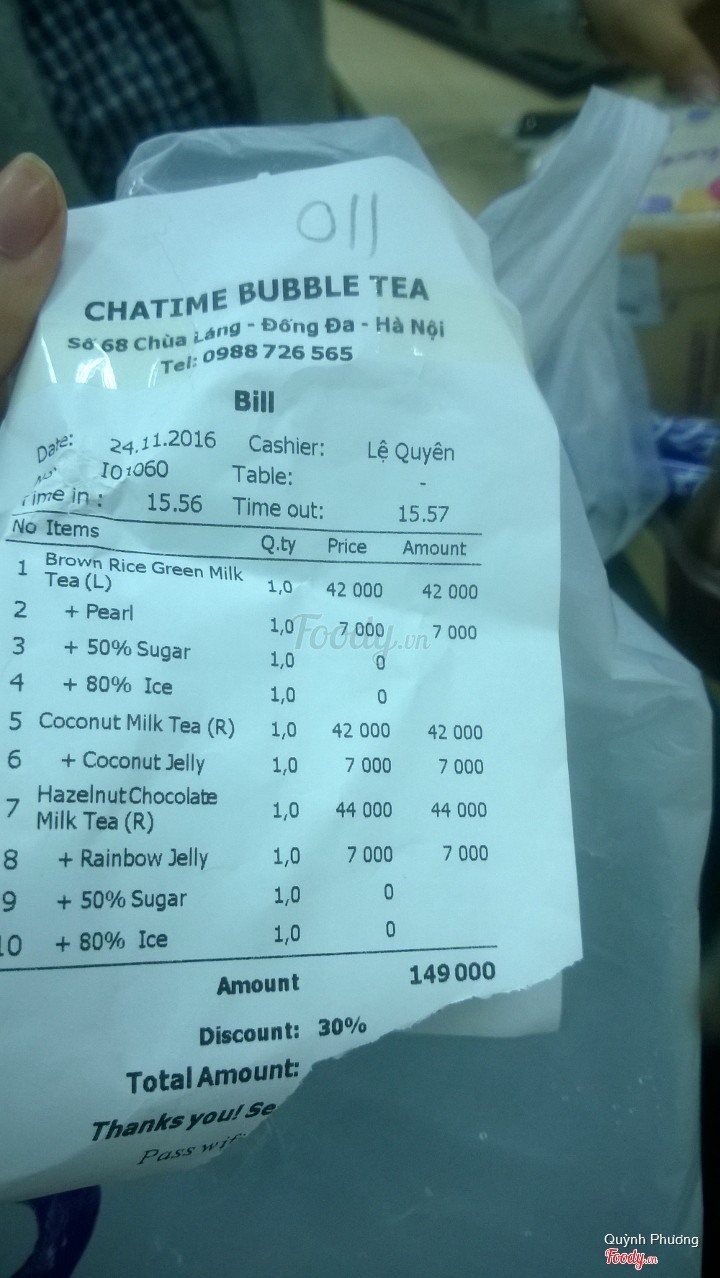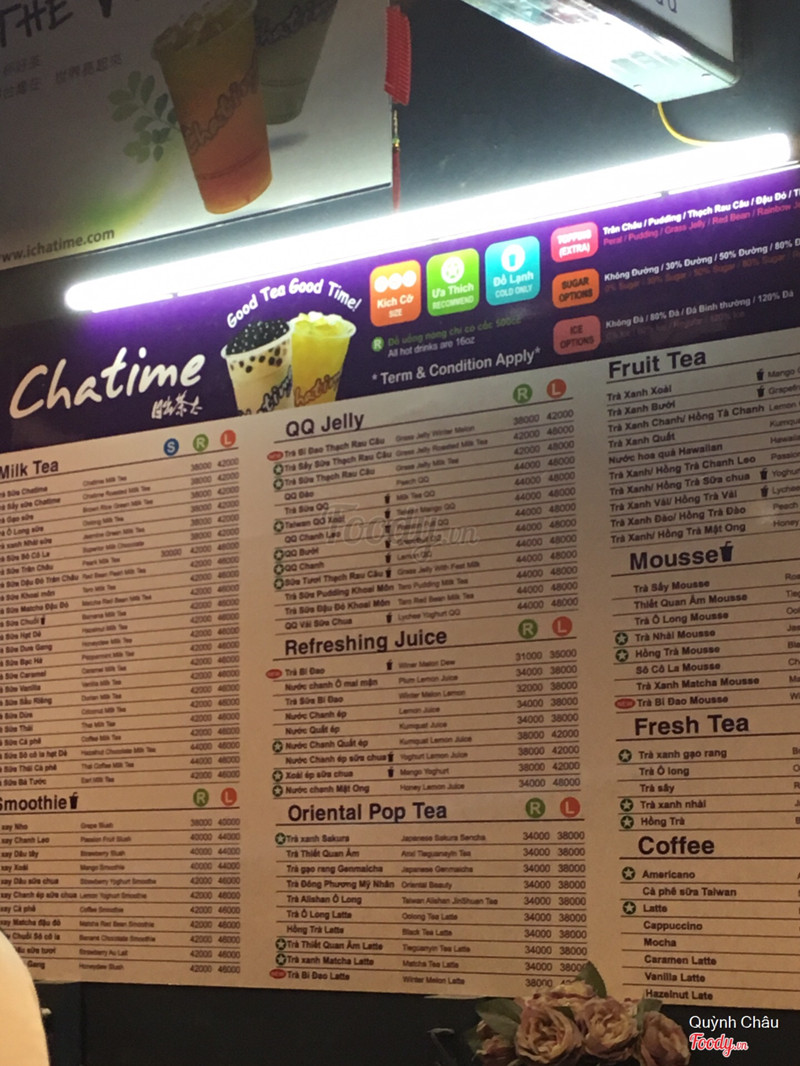 7.2Trà Sữa Chatime - Chùa LángChatime Chùa Láng :) Vào Chatime chuyên gia chỉ gọi matcha đậu đỏ chân châu, so với mặt bằng chung giá cũng tầm tầm Dingtea và có ngay cái Dingtea bên cạnh Vị trà cũng hơi ít, và khá ngọt nên chọn ít đường hơn sẽ vừa hơn vì trời lạnh đá khó tan lắm ạ Trân châu ngon hơn bên Dingtea đó ạ, vì Trân châu chatime mềm hơn có vị hơi ngọt ngọt, bên Dingtea thì bị cứng hơn và không có vị lắm Quân trang trí cũng khá đẹp, nhân viên phục vụ khá nhanh chóng, nhiệt tình ...View more