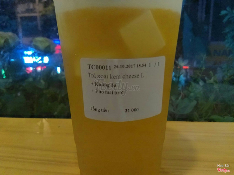 7.0Trà ổnSau vụ royaltea ship đổ trà thì mình chuyển sang các loại khác. Thấy cũng gần nhà nên mình đặt thử. Cảm nhận kem mặn ko đc ngon như bên royal nhưng chất lượng trà khá ổn. Mình gọi trà xoài thấy vị xoài đậm, thơm thoang thoảng mùi trà xanh. Uống thỉnh thoảng có miếng xoài lọt vô ống hút hay hay. Nói chung là recomment các bạn có thể thử nhiều loại ở đây ! ...Xem thêm