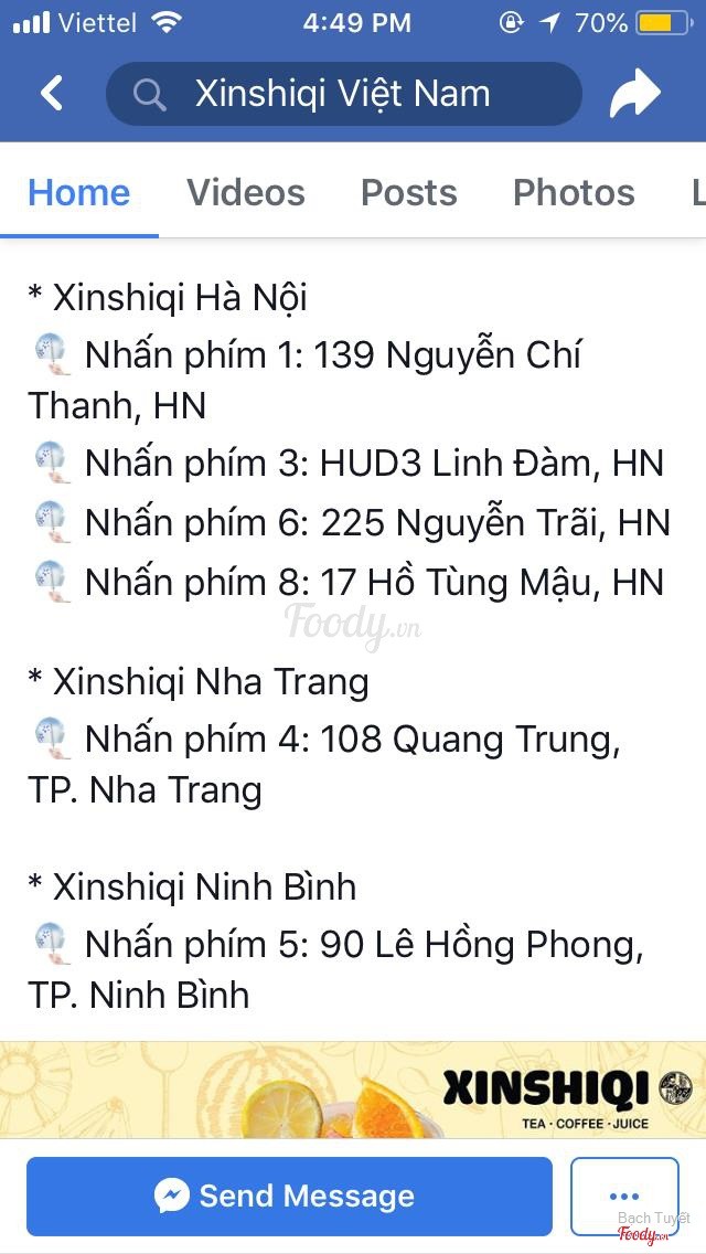 9.8Ngon!!!Nhân dịp đến Hà Nội du lịch mình được bạn chỉ cho chỗ này, vào gọi 3 phần trà trái cây. Mình uống món Bưởi bá vương, siêu ngonnn luôn nha, tép bưởi siêu nhiều mà không bị đắng tí nào. Ly nước nhìn cũng rất xinh nữa. Mong là Xinshiqi sẽ nam tiến vào TPHCM, tui nhớ lắm rồi!!! ...Xem thêm
