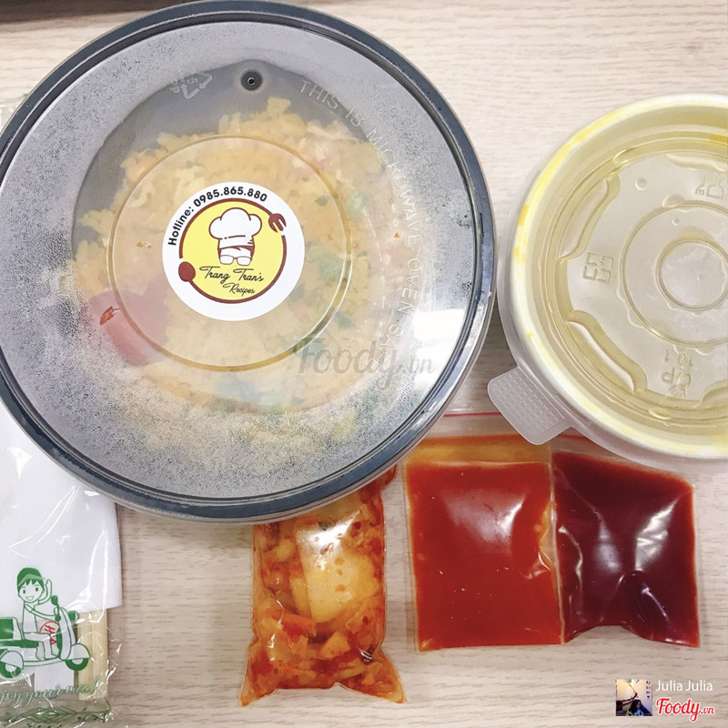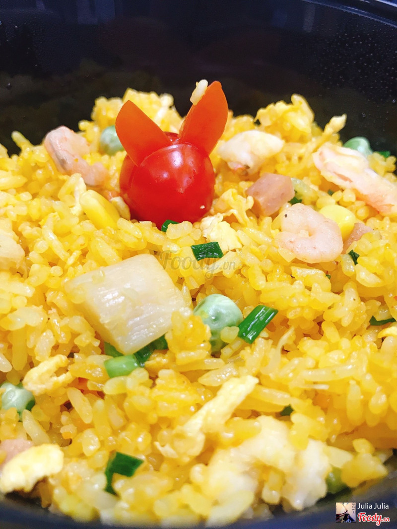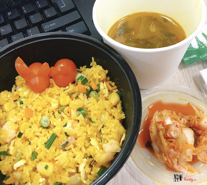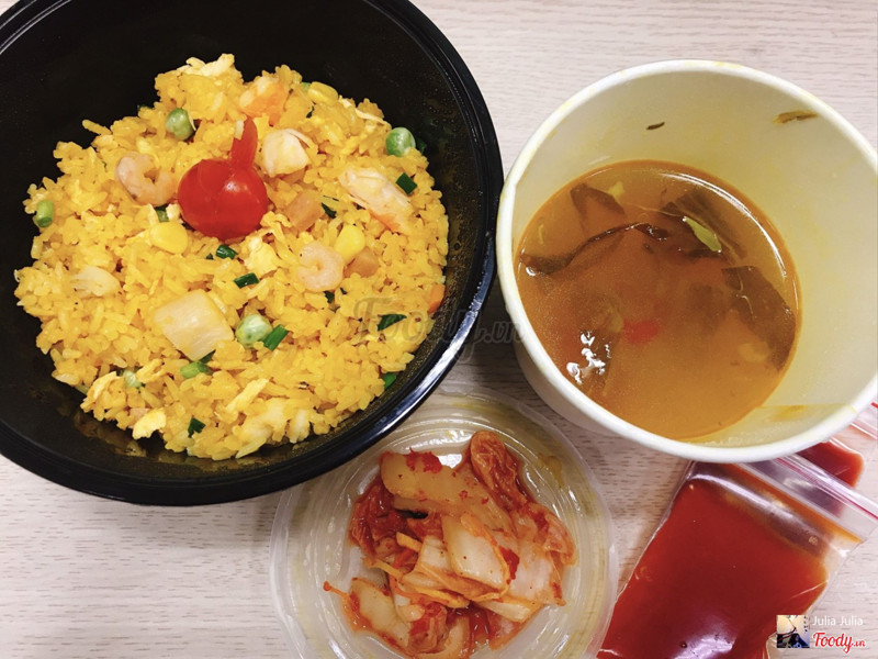 8.8Cơm rang hải sản ngonQuán hơi xa nhưng ship rất nhanh, mình nhận cơm còn nóng ấm. Mở hộp cơm ra thấy con thỏ cà chua rõ yêu, quán siêu tỉ mỉ luôn ấy. Cơm rang vàng ruộm, khá nhiều tôm, sò điệp, xúc xích trứng, rõ vị hải sản, đậu Hà Lan cũng thơm, nhìn tổng thể màu sắc hài hòa đẹp mắt. Canh dưa chua chua vừa miệng. Kim chi hơi chua cay so với mình, nhưng trộn luôn vào cơm ăn là vừa. Nói chung khá đáng tiền sẽ đặt lại. ...Xem thêm