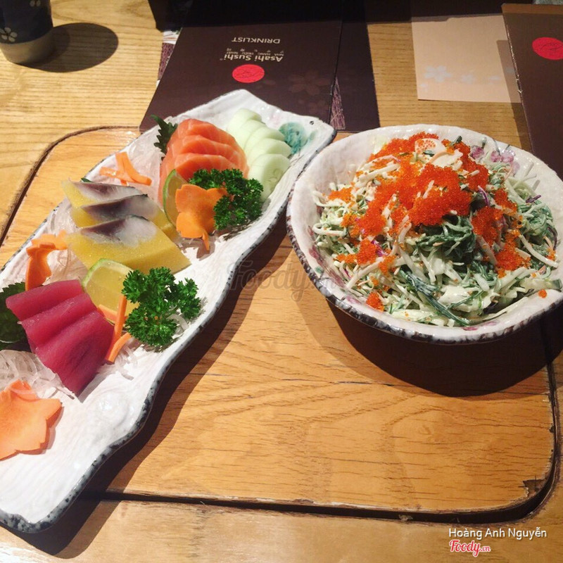 8.6Triều Nhật Asahi Sushi - Bà TriệuĐúng là ngon, đúng là giá chát, thik nhất là sasimi cá trích vàng ép trứng, sau đó là cá ngừ, sau đó là cá hồi, ngao, cá saba,.... Và sau đó thì có mấy món khó hiểu như là tỏi nướng, 6 miếng tỏi bóc vỏ rồi nướng mà cũng bán được, khó hiểu quá. ...Xem thêm