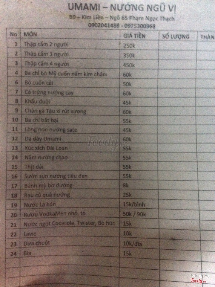 7.6Umami - Nướng ngũ vịLần đầu tiên đi ăn nướng than, ghé Umami theo lời giới thiệu của đứa bạn. Gọi một suất thập cẩm 2 người 250k, ăn no phè phỡn. Nước chấm ngon, thịt ướp đậm đà, thích nhất là món thịt ba chỉ, chân gà, và cá trứng. Nầm, dạ dày, gầu bỏ, lòng để miếng hơi to lâu chín mà còn dai nữa, nhai sái quai hàm; bạch tuộc hơi bở không dai nên không thích lắm. Anh phục vụ xinh trai, chị chủ quán nhiệt tình, chỗ để xe thoải mái, không gian không có gì đặc sắc nhưng khá là sạch sẽ, vệ sinh. ...Xem thêm