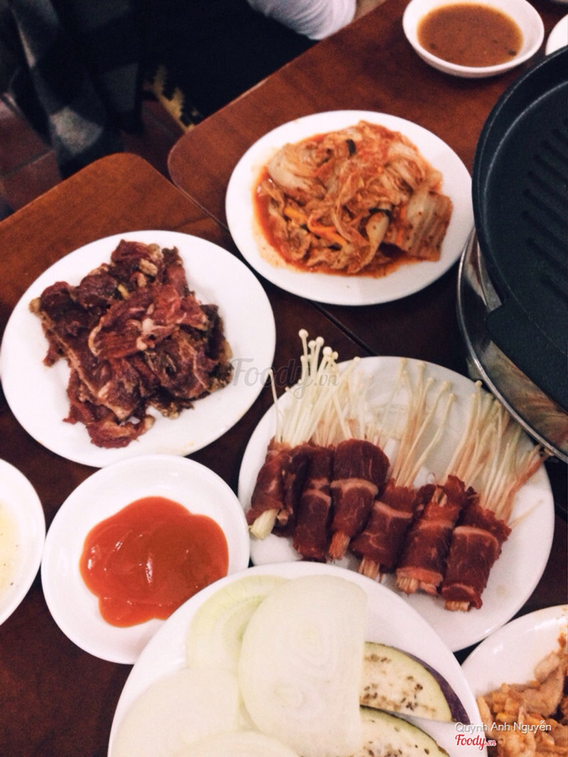 7.2Rẻ và ngonQuán nằm khuất sâu trong hồ Ba Mẫu, muốn nhận ra quán thì cứ nhìn thẳng lên xem cái biển Khách sạn Vạn An thì sẽ thấy quán nhỏ ngay cạnh. Quán bình dân nhưng sạch sẽ, sáng sủa và nhân viên thân thiện. Buổi sáng quán bán cơm suất cho dân văn phòng, buổi tối bán đồ nướng lẩu nhé. Đồ nướng ở đây giá cả rẻ, trung bình tầm 40K -70K/ đĩa, đồ nướng có tới gần 20 loại! Rất phong phú. Đĩa nào đĩa nấy đầy đặn và thịt khá dày miếng, to bản. Ưng nhất là bò cuốn nấm kim châm và ba chỉ nướng vì thịt chắc, tẩm ướp ngon. Mực nướng ở đây ưng 1 cái là mực tươi, ấn vào con mực lúc sống không bị nhũn, lúc nướng lên ngửi thơm, thịt mềm chứ không bị bở. Kim chi ở đây cũng là tự muối, khá là ngon, kiểu muối trong ngày nên không thấy nhũn mà giòn giòn. Sau khi ăn nướng thì gọi thêm nồi lẩu Thái, nồi này tầm 4 - 6 người ăn vì nồi lẩu khá to. Tôm, ngao, mực, thịt bò, đậu đầy đủ. Nhưng mình thích nước lẩu phải có vị chua cay rõ rệt hơn nữa, thơm rõ mùi sả và lá chanh hơn. Tuy nhiên với giá cả phải chăng như vậy min thấy hài lòng về chất lượng. ...Xem thêm