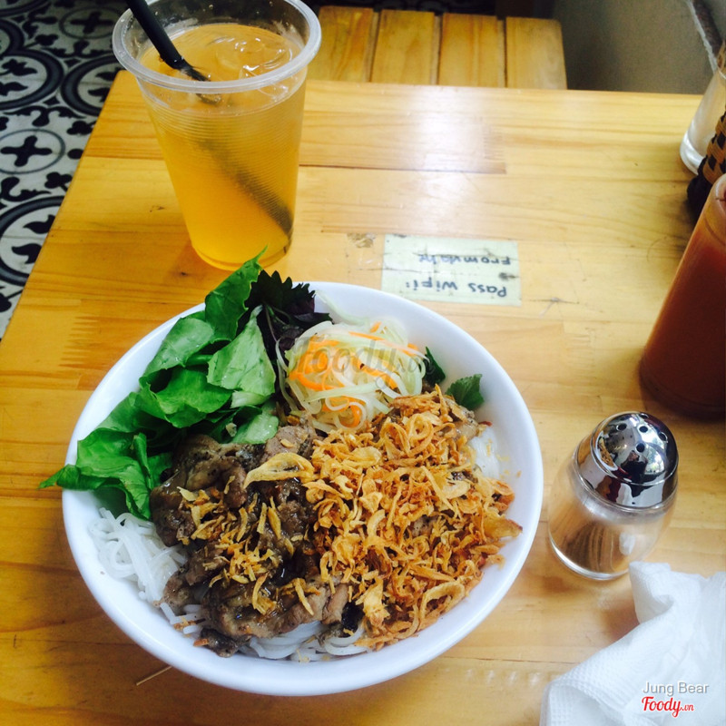 7.4Via He's - Ẩm Thực Việt NamBún bò trộn sốt me Tự nhiên đang đói trời buổi trưa lên foody lại thấy quảng cáo quán này, mà lại gần nhà quá thể nên mình đj ăn thử xem sao. Quán có chỗ để xe rất rộng nhưng chỗ ngồi ở quán thì bé xíu, tầng 1 xếp được 1 bàn ngồi vỉa hè. Còn trêb tầng 2 xếp đc thêm vài bàn. Full capacity đc 5 người... Mình gọi một bún trộn và một trà tắc mật ong. Về trà thì thấy hơi bị nhạt ko ngọt như ý mình, với tắc bị đắng. Bún thì ngon phết nhé, sốt hơi ít, nhưng sánh đặc, vị chua chua ngọt ngọt dễ ăn lắm. Cơ mà mình thích sốt mặn hơi xíu thì ăn hợp vị hơn. Thịt bò ăn kèm thì xào mềm ăn khá vừa miệng. Một suất là 35k. Thêm một trà có 15k thôi nhaa. ...Xem thêm