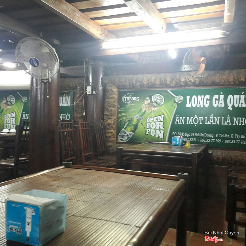 5.6Vườn Ẩm Thực Long Gà - An DươngQuán nằm hơi sâu nhưng cũng dễ tìm, gọi là vườn ẩm thực vì rất rộng, sân vườn bát ngát, mình có ăn cách đây mấy năm, lúc đó thấy rất ngon nhưng lần này quay lại thấy không còn đặc biệt như lần trước Nhà mình 2 người gọi 2 suất gà tươi rán, một miến xào lòng, 2 coca, 1 lạc và 1 khăn giấy thanh toán 260k, không phải quá đắt nhưng so với các quán cùng kiểu thì giá mắc hơn Phần gà rán, gà ta cỡ vừa vừa, 2 người vừa đủ ăn, chất lượng cũng trung bình Miến xào bình thường Nói chung phù hợp với liên hoan hội họp vì không gian rộng rãi thoải mái, còn nhóm nhỏ đi ăn thì có nhiều lựa chọn khác tốt hơn ...View more