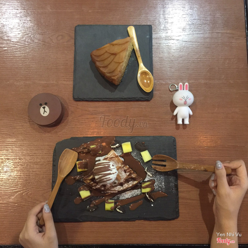 7.0WannaWaffle - IPH Xuân ThủyQuán ở trong khu IPH, nằm ở 1 góc nhỏ nhỏ thôi nhưng biển hiệu cũng khá nổi ;) Quán vắng lắm mình đến lúc tầm 6-7h gì đó chả có ai )) Không gian nhìn ấm cúng nhỏ nhỏ xinh xinh ;) Ở đây có nhiều loại bánh nhé ;) Có cả waffle tự chọn vị để mix nữa ý nhưng gọi theo combo thì rẻ hơn. Combo của mình là 80k thì phải, bánh táo apple pie là 35k. Nhìn bánh táo hơi giống bánh trung thu, ăn ẩm ẩm xốp xốp khá ngon ;) Hơi ngọt 1 chút ;) Còn về waffle thì xoài ăn kèm hơi chua.. Nếu không có nutella ở trên thì chua chắc k ăn dc mất )) Giá hơi đắt chút :( ...Xem thêm