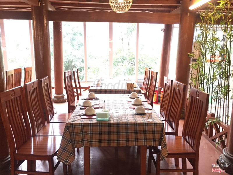 8.0Ăn ngon, nhìn đẹp, không gian ấm ápĐến đây rất nhiều lần rồi, có lần công ty tổ chức tiệc ở đây, mình tranh thủ đến sớm 1 chút chuẩn bị thì hoàn toàn bị không gian ở đây chinh phục. K gian rộng rãi, ngồi bên trong nhìn ra khu vườn bên ngoài cảm giác thư thái, dễ chịu, bàn ghế cũng tiệp màu với nhà sàn. Đồ ăn có khá nhiều món đó đủ từ trên trời dưới bể. Mà mình thích mấy món dân gian ở đây như cơm cháy, rau luộc, canh cà bụng.. Tiệc công ty mình đặt vịt trời, lẩu và vài món nhỏ khác là đủ cho 6 người. Giá thì luôn rẻ, đặt càng nhiều càng rẻ nhé. Nhân viên ngoan, ưng nhẹ :) ...View more
