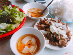 7.6Quán Bún ChảQuán này ngồi trong nhà , diện tích hơi bé nếu ngồi mùa hè thì sẽ thấy bí bách và nóng , nhưng mấy hôm nay lạnh nên k cảm thấy khó chịu , thỉnh thoảng khói lúc nướng thịt nó tạt vào thì khó chịu tí thôi nhưng thowmmmmmm :)) , thịt nướng ở đây miếng thịt khá to mềm , ướp cũng vừa , màu sắc cũng bắt mắt , có nước chấm là hơi bị ngọt tí , còn mọi thử đều ổn cả ;) ...Xem thêm