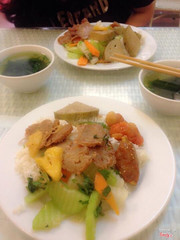 Cơm chay loving hut... thực ra bình thường mình ăn ở quán lại quên không chụp hình :))) món ăn ở quán thì đa dạng hơn nhưng do mua về nhà ăn nên mình chỉ chọn món mình thích ăn nhấg thôi. Cơm chay ăn khá ổn nhưng thực sự thì mình không thích cách phục vụ của nhân viên cho lắm. Nói chung là tạm được. Chấm 6/10