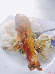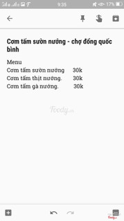 7.8Cơm sườn,gà,thịt nướngQuán nằm trong dãy các quán ăn nằm ngay đầu đường Nguyễn Bình (đối diện chợ Đổng Quốc Bình cũ). Quán chỉ bán buổi trưa từ tầm 10 rưỡi ,11 giờ . Quán có cơm tấm sườn nướng, thịt nướng và đùi gà nướng và đều 30k / suất, nếu bạn muốn ăn thêm hay mix thì có thể gọi riêng. Mình thích nhất và cũng hay gọi nhất là cơm gà nướng. 1 suất cơm có cơm tấm, 1 đùi gà nướng rưới mỡ hành,dưa leo, dưa muối và canh ăn kèm. À, ở đây có 2 loại dưa muối là dưa cải sen và cải bắp, bạn thích ăn loại nào thì có thể yêu cầu (muốn ăn cả 2 loại cũng được luôn) Đùi gà được tẩm ướt rồi nướng không bị khô quá mà thịt ngấm gia vị rất thơm mềm. 1 điểm mà mình thích nữa là ở đây dùng đúng gạo tấm nấu cơm nên cơm khô ăn cùng gà hay thịt, sườn nướng không bị ngán ...View more