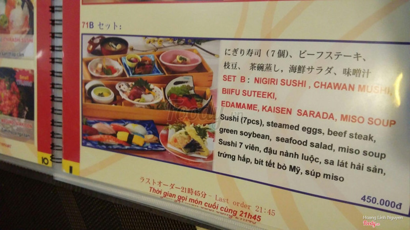 8.4Đồ ăn ngon tinh tế, giá khá cao1 quán ăn Nhật điển hình trang trí kiểu dáng thể hiện từ cửa cho đến bên trong, hơi khác ở chỗ nhân viên nữ mặc áo dài cách điệu 2 tà áo cắt ngắn bớt. Đồ ăn khá ngon và tinh tế, quán chuyên sushi nên gọi ngay 1 set sushi, set này giá tới 450k mà chỉ cho 1 người. Xem menu thì sushi cũng khá đắt so với quán Nhật khác, giá thì chỉ hơn 1 chút nhưng số lượng thì cũng ít đi 1 chút. Nhân viên phục vụ nhiệt tình, ra vào chào hỏi đầy đủ. Ko có gì đáng chê nhưng giá khá chát nên chỉ ăn 1 lần cho biết. ...Xem thêm