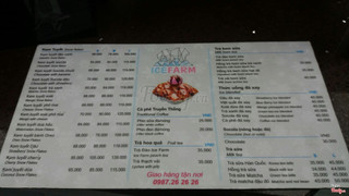 7.8First impressive!Lần đầu tới Icefarm! Cảm nhận đầu iên là quán sạch sẽ, thoáng mát, view ổn rất hợp để cách bạn nữ thích chụp ảnh :> nhân viên nhanh nhẹn chăm chỉ và thân thiện nữa ^^ mình đợi kem hơi lâu... Nhưng khi kem đc bưng ra thì.. Oh My God !!! kem rất hấp dẫn, ăn rất thích, ko quá ngọt cũng ko quá nhạt, bánh bông lan thì mềm và thơm nữa! Đáng để thử lắm nhé ;)) ...Xem thêm