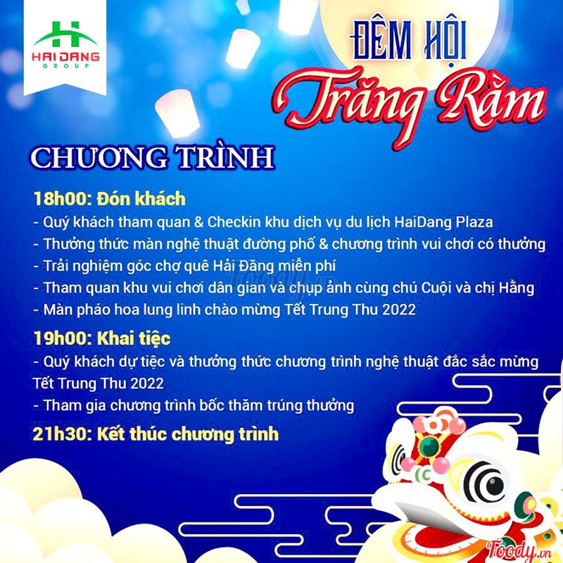 10💥Đê𝗺 𝗛ộ𝗶 𝗧𝗿ă𝗻𝗴 𝗥ằ𝗺 𝗛ả𝗶 Đă𝗻𝗴 𝗣𝗹𝗮𝘇𝗮 𝟮𝟬𝟮𝟮 💥✅ Một đêm duy nhất vô cùng hấp dẫn, độc đáo giữa lòng thành phố Cảng. Món quà ý nghĩa dành cho gia đình và các bé yêu. --- 👉 Màn biểu diễn pháo hoa nghệ thuật hoành tráng, mãn nhãn vào đêm hội tại Quảng trường Cung Kim Cương🎇🎆 👉 Góc chợ quê truyền thống với các món ẩm thực gợi nhớ kỉ niệm xưa🍢🍭🧁 👉 Chương trình vui chơi có thưởng🎁 👉 Tham quan khu các trò chơi dân gian cùng Chị Hằng, Chú Cuội - Điểm checkin lý tưởng lưu giữ những kỉ niệm, khoảnh khắc đặc biệt bên gia đình👨👩👧👦 👉 Không gian nghệ thuật đường phố với các màn biểu diễn độc đáo🪄🪅 👉 Chương trình biểu diễn nghệ thuật đặc sắc trên sân khấu lớn mừng Tết Trung thu 👉 Dạ tiệc với thực đơn 8 món cùng nhiều loại đồ uống. 👉 Bốc thăm trúng thưởng với nhiều phần quà hấp dẫn🎊 --- 🏮17h30 Thứ 6 ngày 09/09/2022 🕌 Lâu đài Kim Cương (Diamond Palace) - Hải Đăng Plaza ⛳ 🚩Đặt vé, giữ chỗ và tư vấn giao vé tận nơi theo yêu cầu: Quý Khách vui lòng liên hệ🚩 📞 090.9966855 ⚜️⚜️⚜️⚜️⚜️⚜️⚜️⚜️⚜️⚜️⚜️⚜️⚜️ 𝐂𝐨̂𝐧𝐠 𝐓𝐲 𝐂𝐏 𝐓𝐚̣̂𝐩 Đ𝐨𝐚̀𝐧 𝐃𝐮 𝐋𝐢̣𝐜𝐡 𝐇𝐚̉𝐢 Đ𝐚̆𝐧𝐠 🔹𝐇𝐀𝐈𝐃𝐀𝐍𝐆 𝐆𝐑𝐎𝐔𝐏🔹 #TrungtâmtổchứcsựkiệnHaidangGroup #TiệccướiHaidangGroup #SựkiệnHaidangGroup #Rượubianhậpkhẩu #Nhàhàng #Bar #Hầmrượu #Khuyếnmại #wedding #restaurant #birthdayparty #promparty #sự_kiện #hội_nghị #sinh_nhật #họp_lớp #event ...Xem thêm