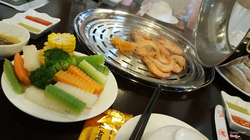 7.0Lẩu Hơi Thủy Tề - Lạch TrayHải sản bắt từ bể ra cân lên đc sơ chế chút r mang ra bàn để hấp luôn nên vẫn giữ đc hương vị và độ ngọt thịt. Ghẹ mẩy, chắc, nhiều thịt. Bề bề to, có cả bề bề gạch ăn đã miệng dã man. Mực, tôm thịt dai và ngọt. Chấm tương ớt hoặc sốt hải sản chua chua ngọt ngọt thơm thơm ngon lắm. Ở đây có cả rau củ chấm kho quẹt nữa. Mình thì lại thích chấm muối vừng vì cgiac kho quẹt hơi mỡ nên chấm cùng rau củ ko ngấm nên bị nhạt nhạt. Cuối cùng là món cháo. Bên dưới là cháo đỗ xanh nhuyễn nấu với nc hấp của hải sản. Cho thêm 1 đĩa hành khô, lá tía tô với j đó r khuấy đều ăn cho ấm bụng. Cháo mình ăn hơi nhạt 1 xíu do hấp nhiều đồ nên nhiều nc quá cháo hơi bị nhạt. Nhân viên phục vụ nhanh nhẹn, nhiệt tình thấy bọn mình bóc vỏ tôm, bề bề, ghẹ là ra dọn vỏ đi liền ...Xem thêm