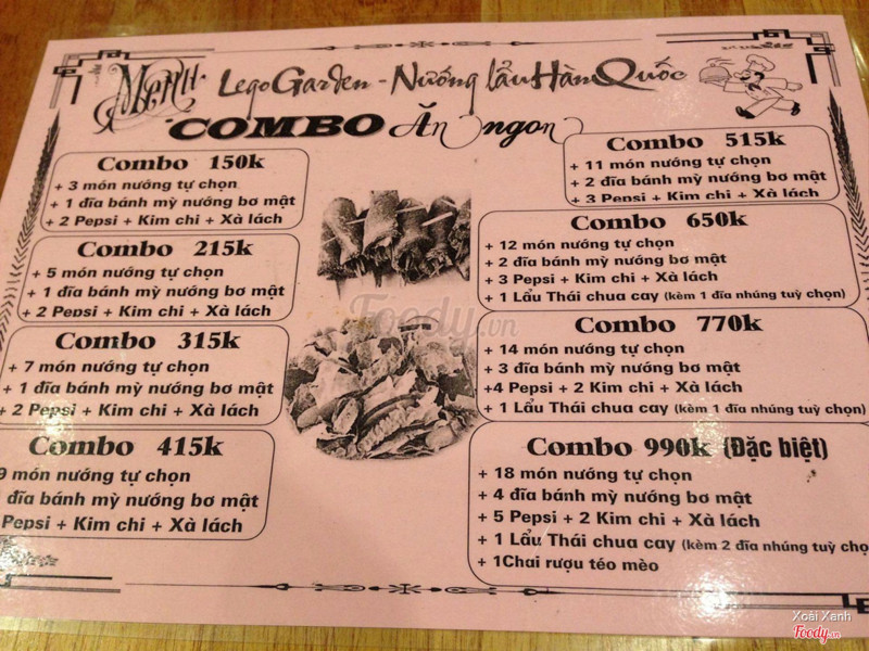7.2Buffet Lego GardenLúc đầu nghe nói quán nằm trong ngõ nên hơi ngại nhưng đến thì thấy ngõ khá to, quán nằm ngay số 1-đầu ngõ luôn nên dễ tìm, đi từ ngoài là sẽ thấy biển to đùng dựng ở đầu ngõ rồi. Buffet là 115k còn thêm lẩu là 145k, menu khá đa dạng, nhiều món, tẩm ướp vừa miệng, đậm đà. Thích nhất chắc là bò cuộn nấm vs bò phomai. Nước chấm có 2 loại, mình thấy bình thường, không đặc biệt lắm. Các món được bày gọn gàng, cốc với đĩa đen nên nhìn khá sạch và đẹp. Được ăn kèm với một bát kimchi và một bát dưa góp cho đỡ ngán nữa. Nghe nói là nếu còn đồ thừa sẽ tính 30k hay 40k/đĩa nên mọi người chú ý nhé Quán đông nhưng phục vụ nhiệt tình mỗi tội ngồi tầng 1 hơi bị nóng, tầng 2 có điều hoà nhưng là ngồi bệt. ...Xem thêm