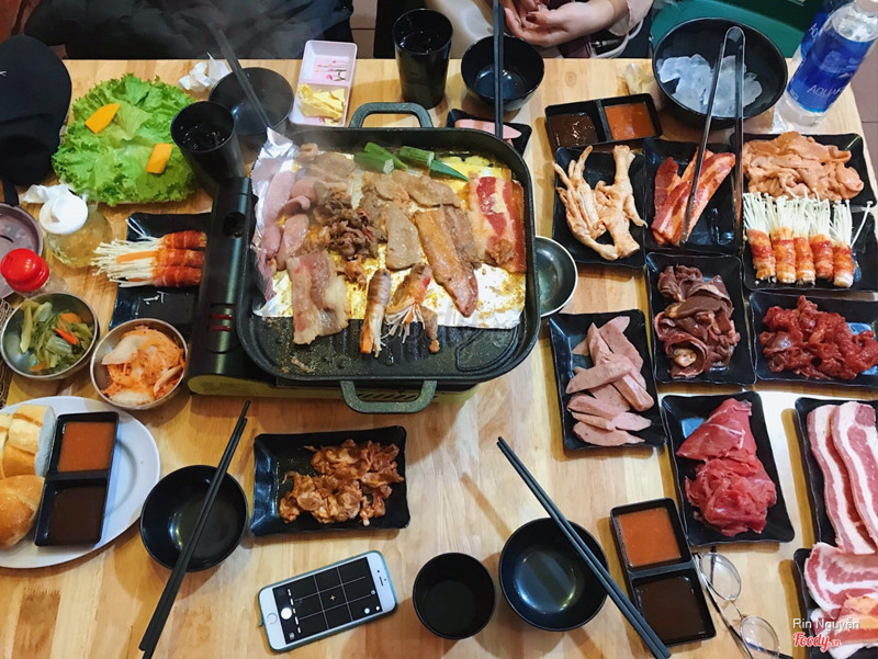 8.0Lần đầu thử 😘Trời lạnh như thế này mà đi ăn nướng lẩu cùng lũ bạn thân thì phải gọi là hết sảy đúng không ạ ? Mình cùng hai con bạn thân rủ nhau đi ăn. Hôm đấy quán khá đông nên bọn mình đành phải ngồi ngoài hơi lạnh và vỉa hè cũng hơi hạn chế nữa. Tụi mình order buffet nướng và lẩu Thái. Ở đây gồm có thịt heo bò sốt bulgogi rồi thì xúc xích lòng các kiểu đa dạng phết đấy các bác ạ 🤩 điểm cộng là sạch sẽ thịt thơm, rau sạch và tươi nhưng điểm trừ lớn là bọn mình order lòng thì k đc ngon cho lắm nên đã bỏ lòng đi k động đến nữa 😟 Thịt khi nướng lên thơm nức mũi, mềm ngon 🤤 Lẩu Thái thì khá bình thường không đặc sắc mấy ạ. Mình ăn tổng 3 người là 456k 😗vị tri mỗi người 152k với giá tiền ntn và đồ ăn như vậy mình thấy khá ổn áp 🤨 thêm nữa anh chị nhân viên phục vụ nhiệt tình chu đáo nhanh nhẹn! Sẽ còn quay lại! Mong quán sẽ mở rộng không gian hơn nữa 👍🏻 ...Xem thêm