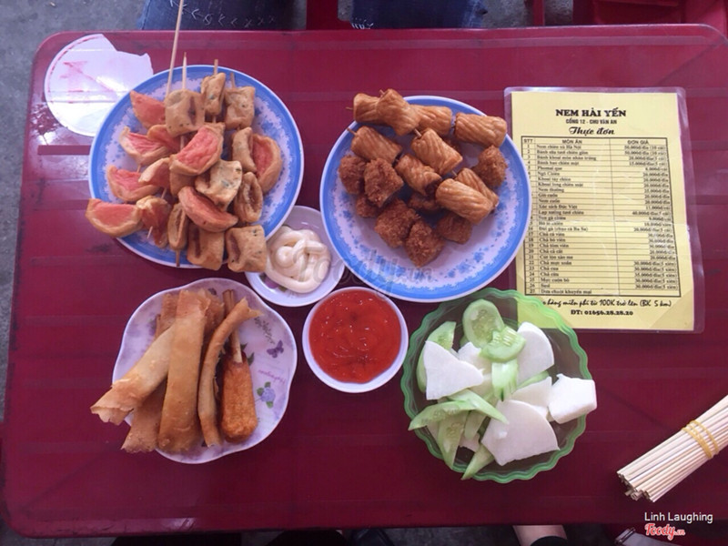 7.8Nem Hải YếnNem chỗ chợ chu văn an chắc chẳng xa lạ gì với học sinh nữa,đông nhất là nhữg giờ tan tầm,qua có khi còn hết chỗ ấy. Nem 50k 1 đĩa 10 chiếc,bao ngán bao no bao mê 😂😂 mình đi 3 đứa gọi 1 nem 1 chả cá vs 1 đĩa xúc xích k nhớ bn cái.bọn mình ăn buôi tối nên rất mát mẻ,cách phục vụ là tự ghi r mag ra order :))) đợi tầm gần 15' thì đủ đồ.mình sẽ thường xuyên ghé quán ăn vì giá cả học sinh và phục vụ rất tốt ...Xem thêm