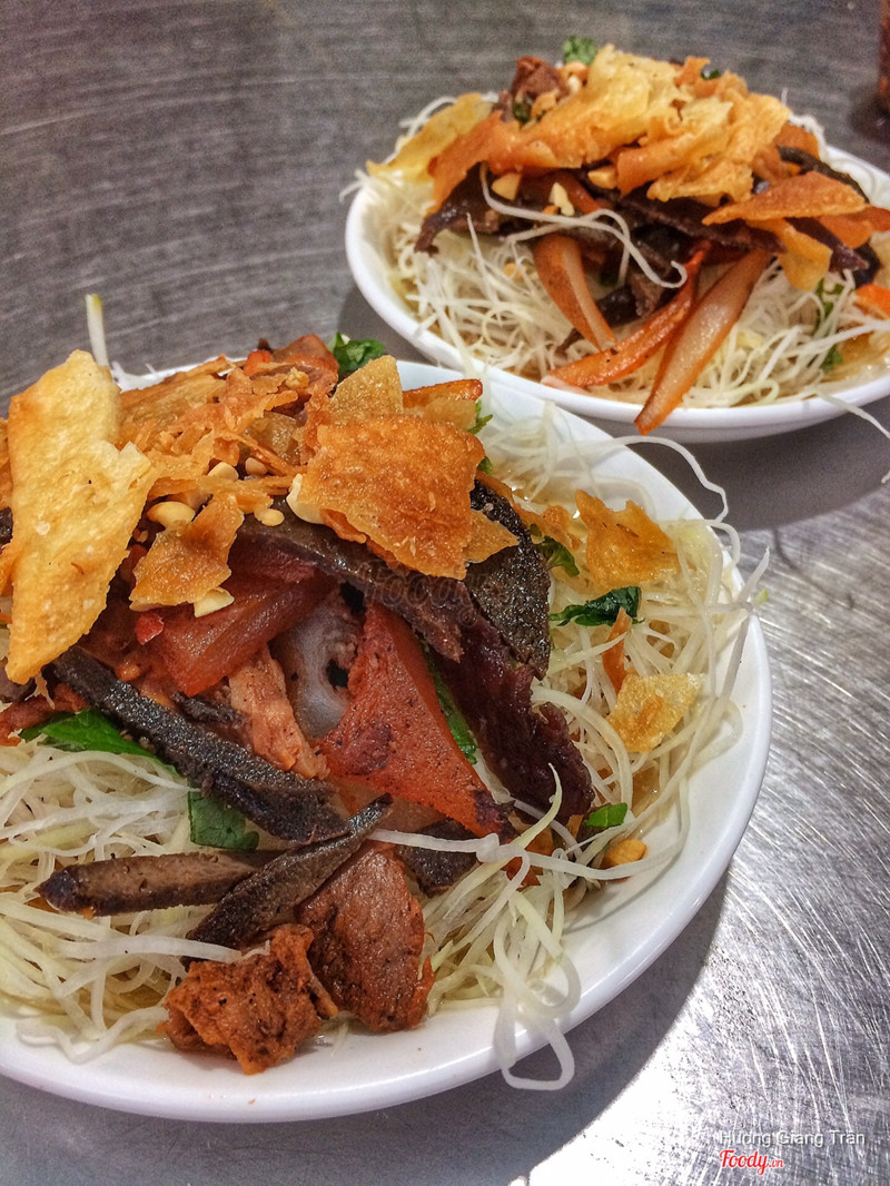 8.8Nộm Bò Khô - Hai Bà TrưngLại thêm một món đặc trưng của ngõ Trương Hán Siêu đêi. Quán của bác nằm ngay đầu ngõ phía tay trái. Tên tuổi của bác gắn liền với món này cũng đến mấy chục năm rồi. Nộm ăn giòn giòn cùng: bánh phồng tôm bẻ vụn, lạc rang, bì bò, thịt bò khô, gan. Bì bò mình thấy ngon bởi nó giòn giòn, sần sật. Nước dấm vô cùng đậm đà, chua chua ngọt ngọt mà còn có chút cay. Điểm đặc biệt là món này ăn cùng rau thơm là cực hợp. Một miếng nộm chua ngọt cùng tí thơm của rau thì không chê vào đâu được. Một bát nộm cũng đầy đặn mà chất lượng. ...Xem thêm