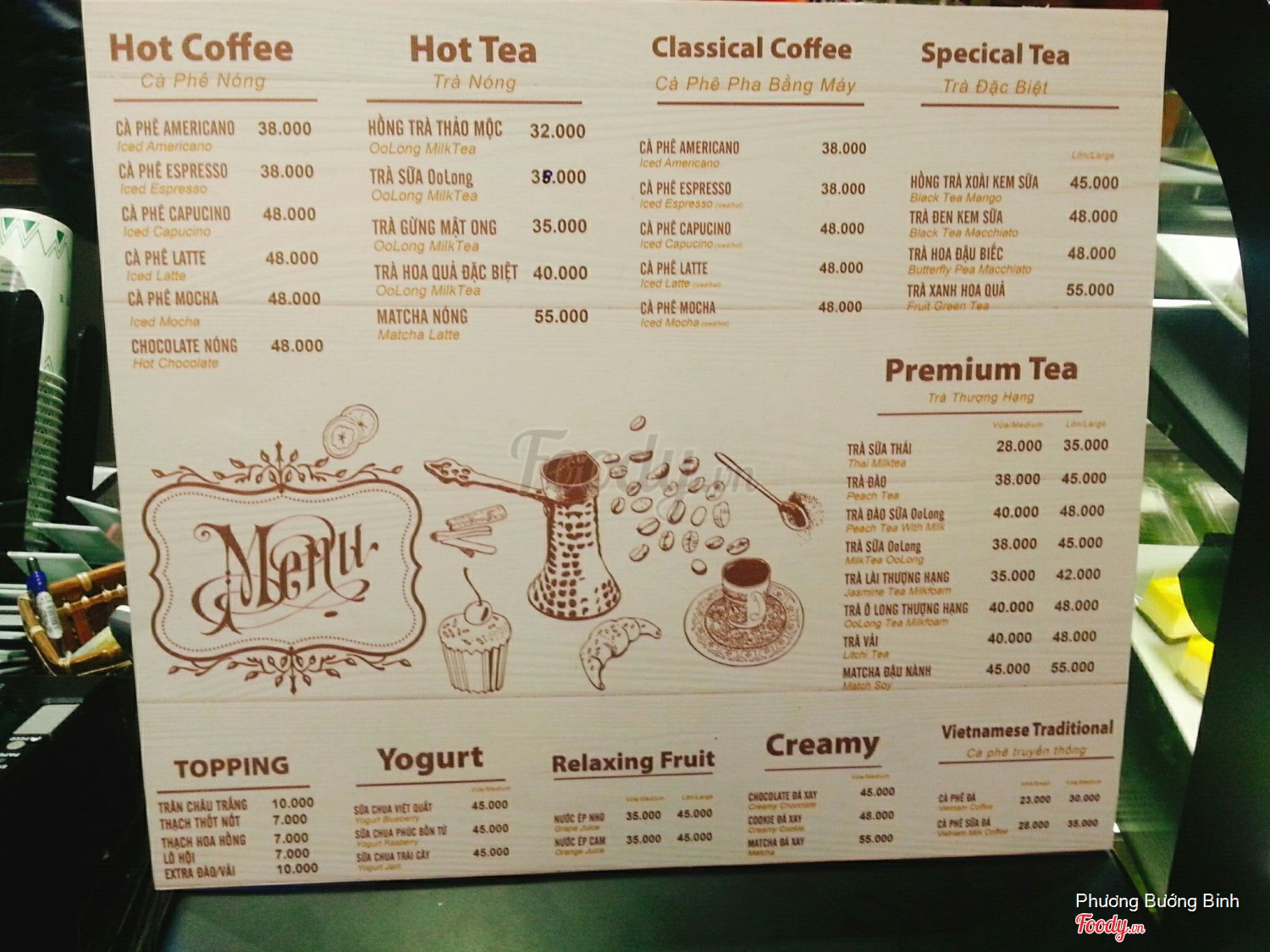 menu mới của quán