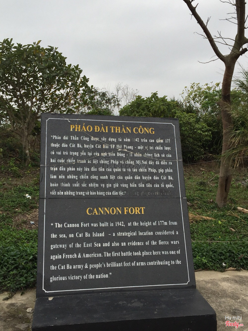 7.0Pháo Đài Thần CôngPháo đài Thần Công trên Núi Ngọc, mất khoảng 1 giờ để tham quan các điểm. Điểm than quan này bao gồm kho hầm đạn, địa đạo, súng và các đài quan sát co thể bao quát gần hết Cát Bà. Vé tham quan nơi này là 40k/người. Tham quan nơi đây có thể ngắm phong cảnh núi non hữu tình ở đài quan sát và cũng có thể học thực tế từ những tư liệu lịch sử còn lưu giữ lại như vũ khí, trang phục, la bàn...ngoài ra, nơi đây là một trong những địa điểm lý tưởng cho tập thể dục, con đường thẳng tấp hay có dốc cho tập gắng sức; không khí thoáng mát và trong sạch rất tốt cho sức khoẻ. ...View more