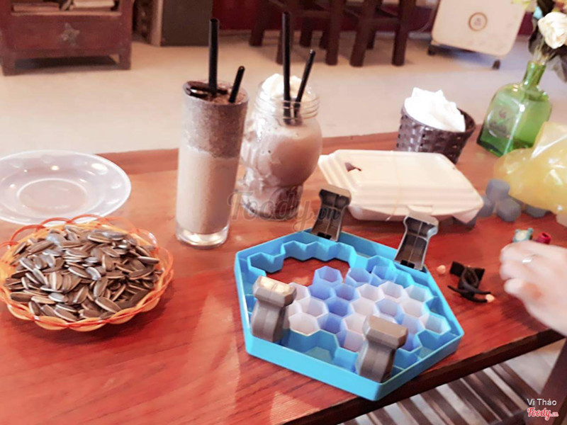 8.8❤️Đầu tiên về ko gian quán mà nói thì toi rất ưng, vintage hoàn toàn luôn trông đơn giản mọi thứ đều nhỏ nhắn đc sắp đặt hợp lý và tinh tế từ cái vali nhỏ treo lên tường trở thành bàn nc cho 2 ng đến giá sách ngôn tình ))) rồi game này, bảng phi tiêu treo trc cửa ))) Mấy cái khung ảnh treo tường cũng nhẹ nhàng đáng yêu khó tả :(( Ncl toi rất thích thiết kế tận dụng mọi khoảng trống ở đây làm cho khách ko còn cgiac quán bí bách diện tích hẹp nữaa ❤️ Nước uống thì các loại trà toi thử hết rồi uống đều khá ổn. Mặc dù khái niệm thanh-thạch đào ở đây hơi khác chút so vs những quán khác toi từng đi ))) Giá cả 30-55k. Menu có mấy loại "special drinks" giá khá cao ko biết ntn nhưng tên thì ấn tượng ấy vd như nước bùn chẳng hạn )) ...Xem thêm