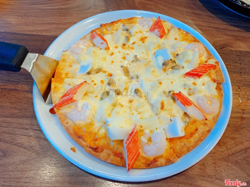 9.8Ngon tuyệt!Ăn pizza ở đây đúng là đáng đồng tiền bát gạo luôn á. Nhân viên phục vụ nhanh nhẹn và rất nhiệt tình. Mình đi ăn buổi trưa nên khi gọi món xong không phải chờ quá lâu. Pizza ở đây đế giòn, mình thử gọi hai loại pizza thì ấn tượng với pizza gà nướng dứa nhất. Nói chung là chất lượng khỏi bàn luôn á. ...Xem thêm