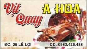 9.4Vịt Quay A HoaMón vịt quay chuẩn vị HongKong Quảng Đông Trung quốc, do người Trung quốc trực tiếp chế biến tẩm ướp gia vị và quay. Vịt ăn thơm, da giòn, thịt ngọt, mềm, dai. ...Xem thêm