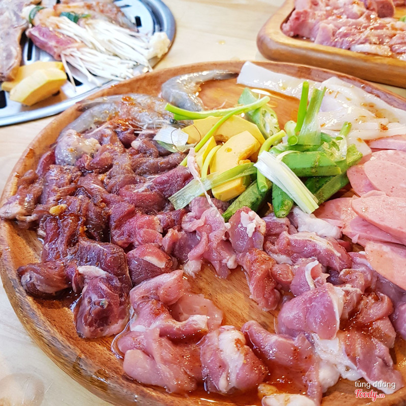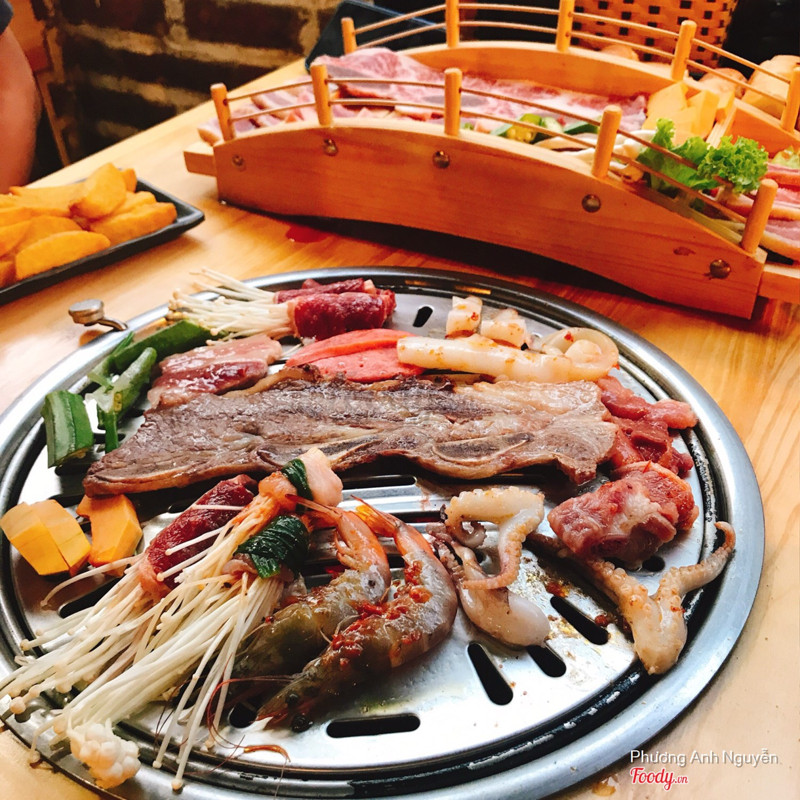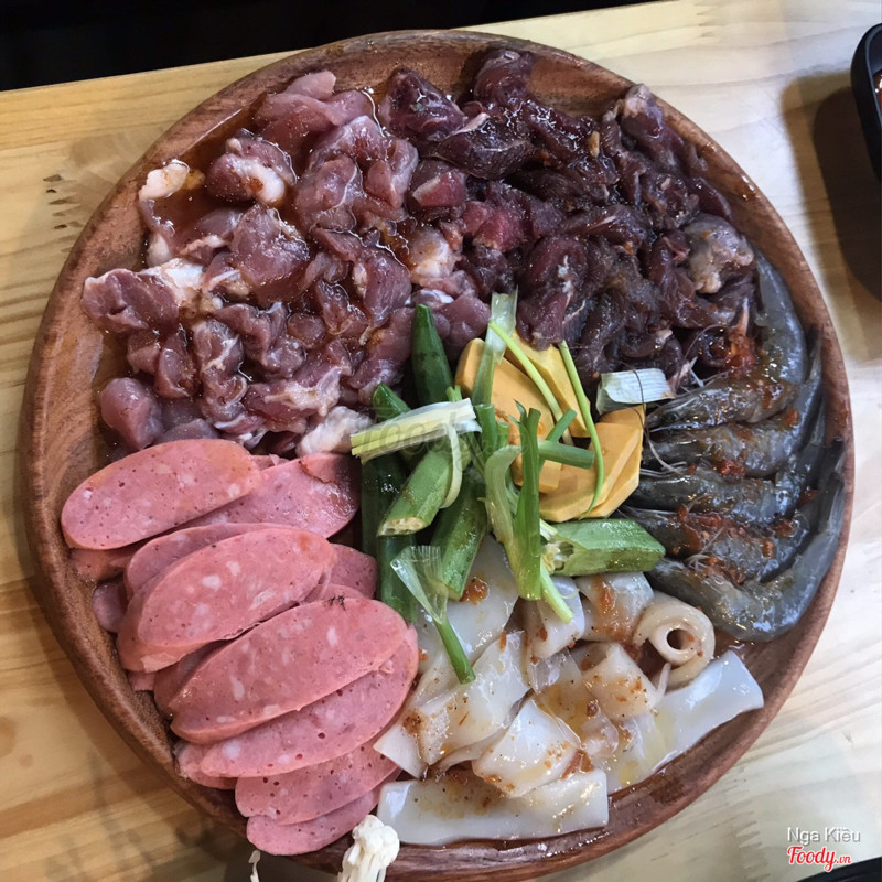 Đây là lần 2 ăn ở đây sau gần 1 năm :))) quán năm trc nhìn vào trông k có j nổi bật cả, chủ bày có bàn ghế ra vỉa hè, xung quanh căng phông hình ảnh k thu hút như các quán khác. Đến lần này quay lại thì đã có sự thay đổi. Quán làm rộng vào trong nhà, bàn ghế sắp xếp gọn gàng rộng rãi mát mẻ, có cả phông cổ xanh cho ai thích check in thì có thể đi ra chụp :))). Không gian đã có sự thay đổi để thu hút khách còn đến đồ ăn thì vẫn vậy. NGON - RẺ còn bổ thì chưa biết . Ảnh này là đi 3 ng. Goin combo 300 ăn nê nướng với 5 món tự chọn thì phải + 2 nước + ngô chiên ( khoai chiên). Cứ tưởng chỉ có vậy hóa ra ăn xog nướng còn có 1 nồi lẩu 1 ng kèm trog combo( quên k chụp nồi lẩu) Ăn nướg đã no. Ăn lẩu lại no tễ mồm. Vừa vì no vừa vì vội ăn đi chơi nên chỉ ăn mấy thứ xịn xịn còn đâu vẫn còn đầy đồ lẩu. Chốt lại là quán này nếu mà ít xiền nhưg mà thèm ăn lẩu nướg thì đây là lựa chọn hàng đầu 👍