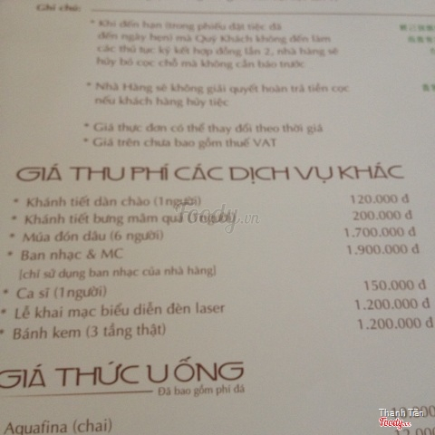 Ghi chú đặt bàn