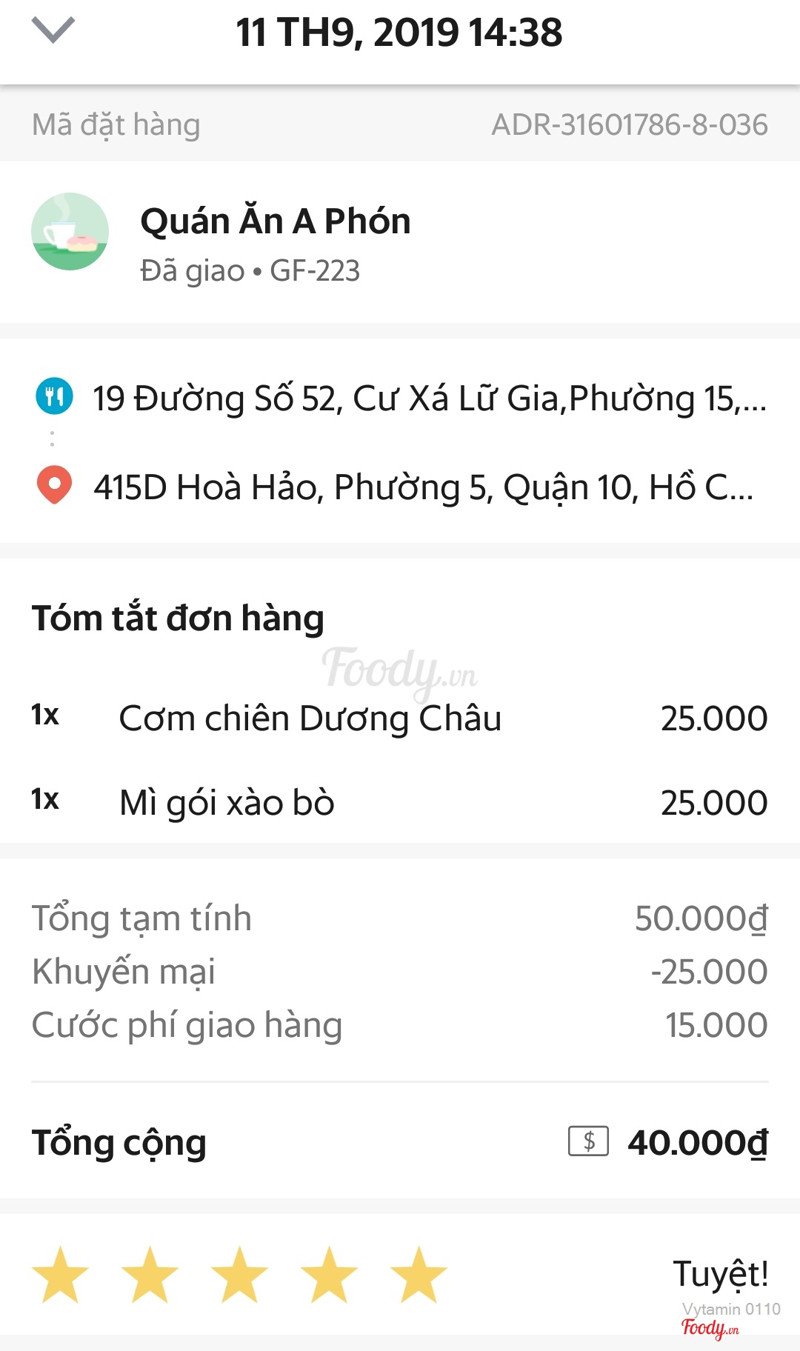 7.6Ăn đượcQuán buổi sáng đã bán rồi, order giao hàng rất nhanh, món giao đến vẫn còn nóng. Order phở xào bò, trứng ốp la và 1 đùi gà chiên. Đồ ăn giao đến vẫn còn nóng, phần đùi gà chiên đựng trong bao nilon riêng, có nước tương và tương ớt ăn kèm, có tăm, đũa. Phở xào bò lượng vừa đủ, không quá ngấy dầu, bò cũng nhiều, không bị dai, trứng ốp la được chiên chín. Đùi gà chiên khá to, không quá ngấy dầu, không bị hôi, chiên vừa tới không bị cháy, ăn cũng ok. Giá khuyến mãi rất hợp lí. ...Xem thêm