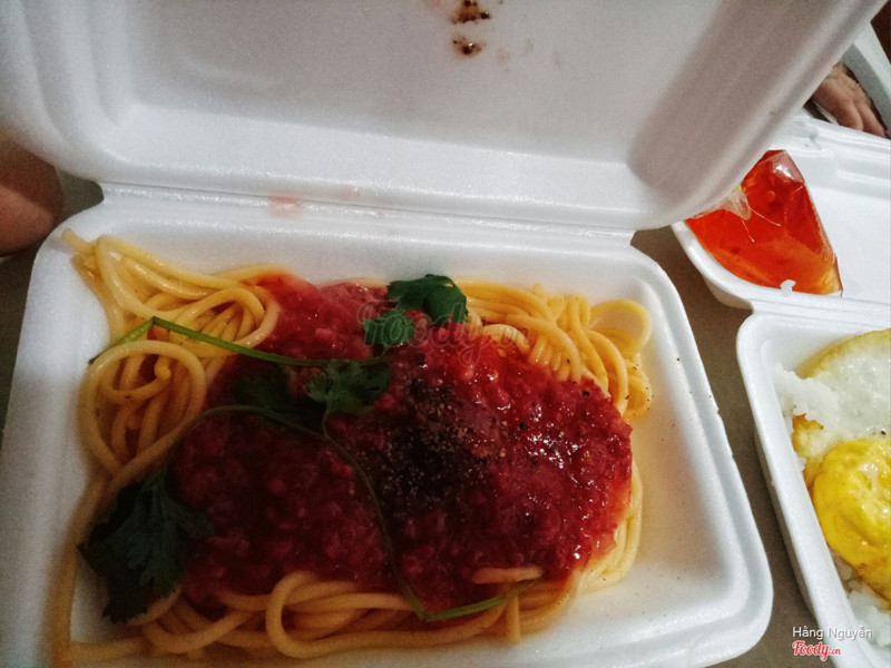 8.8Nhiều món ăn đa dạng🌟Có lần lên Now order đồ về ăn tìm được quán A Phón khá nhiều món hấp dẫn và giá mềm. Thế là Ú lên Now mua liền và sẵn Now của quán đang có các chương trình giảm giá nên bill Ú mua có 60k thôi. 🌟 Món cơm tấm và Trứng chiên là mua thêm cho baby nên không có gì đặc biệt để review đồ. 🌟 Món mì Ý khá nóng, thơm. Cọng mì Ý trụng vừa tầm, nhưng sốt thỉ băm thì không ok lắm, có nhiều màu quá, chứ không phải từ cà chua nên Ú ăn không được nhiều. 🌟 Các món ăn đựng hộp vệ sinh sạch sẽ. ...Xem thêm