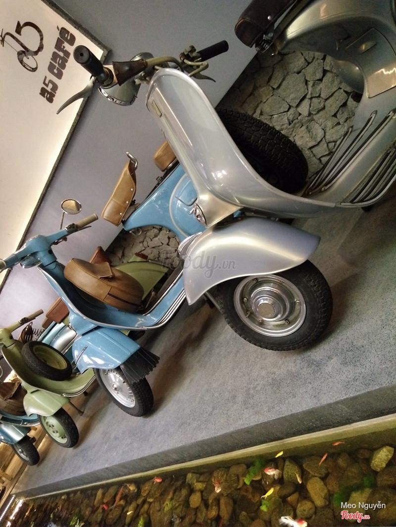 Hôm nay có dịp dẫn người yêu mình đi học ở trong A5 cafe nên tiện ngồi lại, vừa để chờ, vừa để thưởng thức một vài món đồ uống cũng như không gian dễ thương ở đây. Quán nằm ngay đầu hẻm nên không khó để tìm, chỗ để xe thoải mái, an ninh. Mình chọn ngồi một bàn có ghế đệm ở mép tường. Bàn ghế ở đây khá lạ, nhiều màu sắc kiểu dáng khác nhau nhưng nhìn tổng thể khá hài hoà và nhẹ nhàng. Thêm vào đó, bên trong quán còn có vài chiếc xe vespa đời cũ, cộng thêm cây xanh ở xung quanh tạo cảm giác dễ chịu cho khách. Mình ord Trà vải và Trà Oolong Macchiato, trà vải ban đầu uống khá thơm, đậm vị vải, nhưng để khoảng 5’ thì bị nhạt và nhanh mất mùi, nhìn chung thì món này bình thường, uống giải khát thì ok. Trà Oolong macchiato lúc mới mang ra thì nhìn khá hấp dẫn, lớp milkfoam dày và thơm. Mình nếm thử milkfoam thì thấy khá đượm béo, mịn mịn thích thích nhưng lỗi nhỏ đó là khá mặn - chắc bị nhiều muối xíu mà không sao. Còn trà Oolong khá nhạt, vị trà không nhiều lắm. Nói chung món này tạm ổn, chất lượng với giá thành như này thì cũng được. Nhân viên cũng khá niềm nở, lúc đầu thì hơi nóng xíu do ngồi xa quạt, nhưng về sau thì đỡ hơn dòi :))) vì ngồi xa nên không có chụp được nhiều ảnh, có nhiêu đó xem đỡ nhen mấy homiee :))) ...Xem thêm