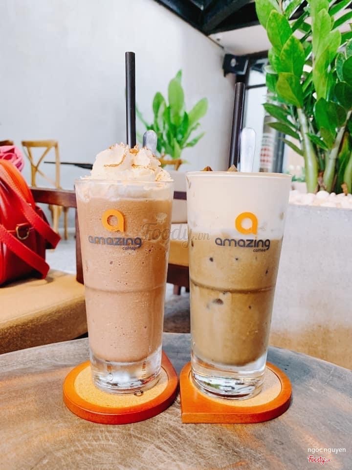 7.2Amazing Coffee_ Mình uống quán này cũng được vài lần, và mỗi lần ghé quán uống mình lại chọn món khác nhau để uống thử. Vì menu của quán khá phong phú, nhiều món, có cả đồ ăn, bánh nữa. _ Quán có 2 mặt tiền và có chổ giữ xe miễn phí, chỗ giữ xe siêu mát. _ Quán cũng có biểu diễn***nhạc vào buổi tối, nhưng mình không có hỏi là khi nào vì mình chỉ đi được vào buổi trưa thôi. _ Nước ở đây pha khá ngon, thử vài món thì món nào cũng thấy ưng Summer Drink Socola đá xay Trà than tre Matcha đá xay Socola đá xay hạnh nhân ...Xem thêm