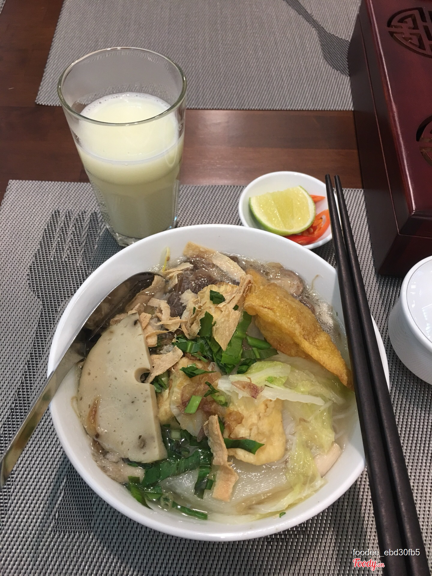 Bữa sáng ấm bụng với tô hủ tíu chay và ly sữa sen, ta nói nó ngon, ngon lắm luôn á. Quán thoáng mát, phục vụ dễ thương.