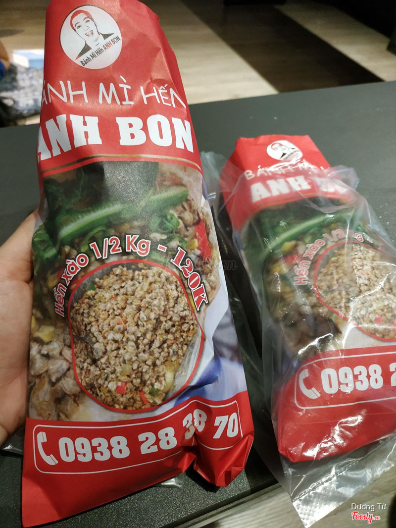 7.2Anh Bon - Bánh Mì Hến - Thành TháiBánh mì hến giá 15k/ổ, quán có cái xe đẩy nhỏ màu đỏ thui ah, buổi chiều có khi ở đường Lý Thường Kiệt, có khi ở Tô Hiến Thành, Thành Thái v..v..., Ổ bánh cũng khá bự, mà bánh mì xe đẩy nên ko đc giòn cho lắm. Hến xào bơ, hành tây, bắp mỹ.. 1 ổ đc khoảng 3 muỗng, thêm dưa leo, rau răm, lót tương chua ngọt có mùi gừng hơi trật tông, với ớt miếng cay muốn xỉu. Nói chung ăn ok, khá rẻ, tiện lợi. Có bán hến xào riêng nữa, giá 120k/nửa kg. ...Xem thêm