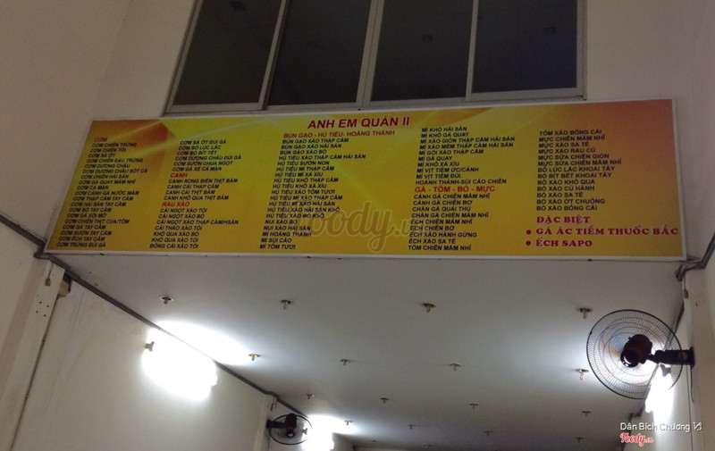 7.8Anh Em Quán - Hủ Tiếu Xào & Cơm GàQuán gần nhà mình lắm mà gia đình bà con bên ngoại cũng gần đây nên hay nhờ mua dùm quán này . Cơm gà tắm nước mắm ở đây giá chấp nhận được , miếng gà rất to , cơm chiên kèm trứng nên chia làm 2 ăn với mẹ cũng ok lắm . Có sốt chua ngọt pha riêng nữa chứ . Tiệm cũng sáng sủa , có không gian ngồi trong nhà , menu siêu nhiều món với giá khá là ok luôn . Dự tính hôm nào thử miến xào thịt cua và sủi cảo của quán coi sao . ...Xem thêm