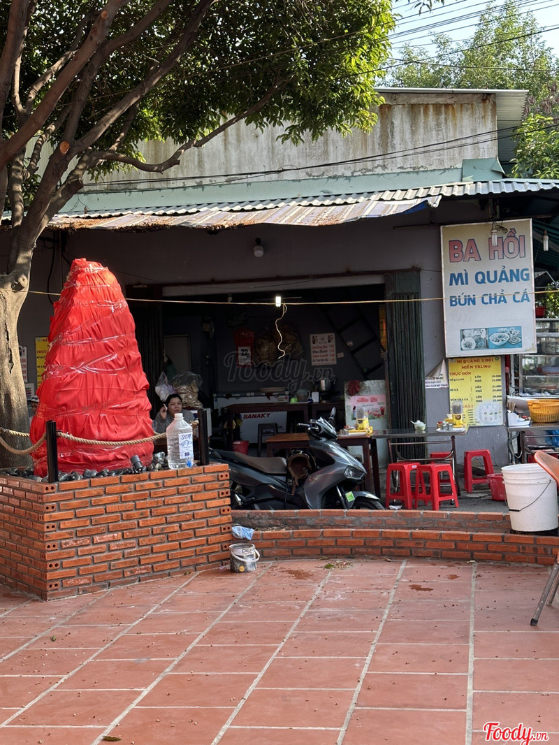 8.2Ba Hồi - Mì Quảng & Bún Chả Cá- Mình ghé quán khoảng 5h chiều. Buổi chiều quán có để bàn ghế ra phía ngoài, buổi sáng chỉ để bàn ghế trong nhà nên hơi chật. Mình gọi 1 mì Quảng thập cẩm, mà hình như hết tôm rồi hay sao ý, bình thường ăn là 30k, nay có 25k à, chắc thiếu món. - 1 tô đầy đủ, nhiều mì, topping có chả, trứng cút và thịt heo. Thêm xíu ớt rim và mắm ớt vào cho đậm đà, cho rau vào, trộn đều lên, rồi bẻ miếng bánh đá vào ăn. Nói chung là ngon. ...Xem thêm