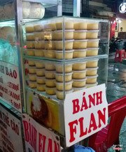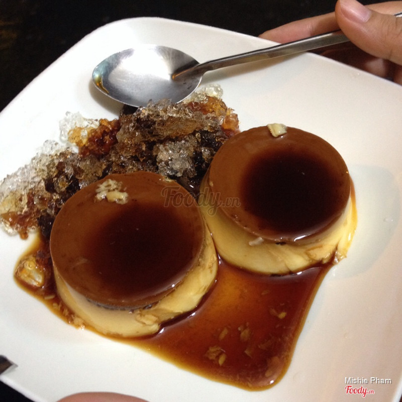 6.4Bánh Flan - Nguyễn TrãiMình thấy bánh flan ở đây giá hơi bị bê đê vì nó cứ lửng lửng thế nào ấy và không được to mấy khi so với nhiều nơi mình ăn. Giá 6.000 đồng cho một cái bánh flan và mình đã mua năm cái với giá 30.000 đồng và không lấy kèm đá. Bánh flan có màu vàng nhạt, không thơm và không được mềm lắm và khá nhỏ. Bánh ăn không quá ngọt. Phần nước đường ở dưới đăng đắng giúp trung hòa lại vị giác làm cho người ăn không cảm thấy ngán. Mấy cô bán hàng ở đây khá niềm nở và biết bắt chuyện với khách. Mình khá thích điều này và đương nhiên với ấn tượng tốt ở lần đầu đến thì mình sẽ trở lại vào một ngày không xa để tiếp tục thưởng thức hương vị bánh flan của quán. ...Xem thêm