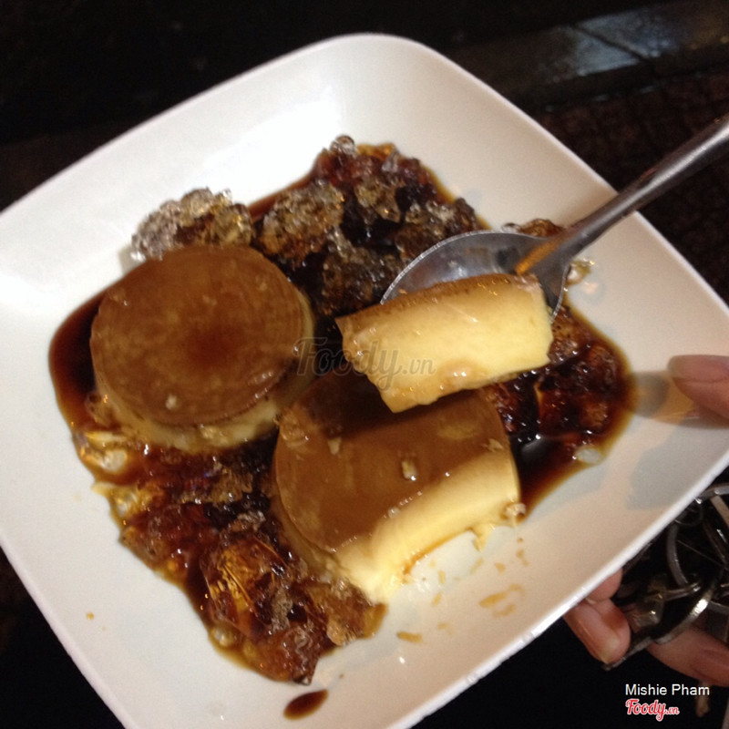 7.8Bánh Flan dành cho các "dân chơi" kkkHôm qua tan làm trễ, đồng nghiệp rủ ghé hẻm 212A ăn bò né. Xong kéo ngay ra đầu hẻm (bên tay trái, đối diện beer club 201 Nguyễn Trãi, Q.1) ăn bánh Flan. Hỏi chuyện thì biết cô chủ bán bánh bao ở đây 20 năm rồi, còn bánh Flan do con gái cô làm, cô mới bán được 2 năm. Tiệm vỉa hè, bình dân nhưng cô đổ bánh Flan ra đĩa sạch sẽ lắm. Bánh Flan của cô ngọt vừa phải, nước đường thắng cũng không đắng quá, vừa vặn. 6,000 VNĐ/ 1 bánh. Ăn vui mồm 2 bánh là đủ rồi. Gọi là bánh Flan dành cho các dân chơi vì cô bán tới tận 2h sáng. Mở hàng tầm 3, 4h chiều là có bánh bao, bánh Flan tầm 4, 5h. Tiệm có chỗ ngồi bé thôi, nhưng trời không mưa thì ngồi tràn vào hẻm được. Gần cơ quan nên quà chiều thi thoảng gọi của cô chắc chắn tuyệt! ...Xem thêm